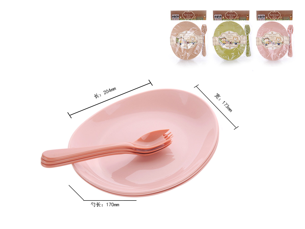 得力熊歐式大號(hào)簡(jiǎn)約橢圓餐盤(4pcs)( 配4pcs叉匙)