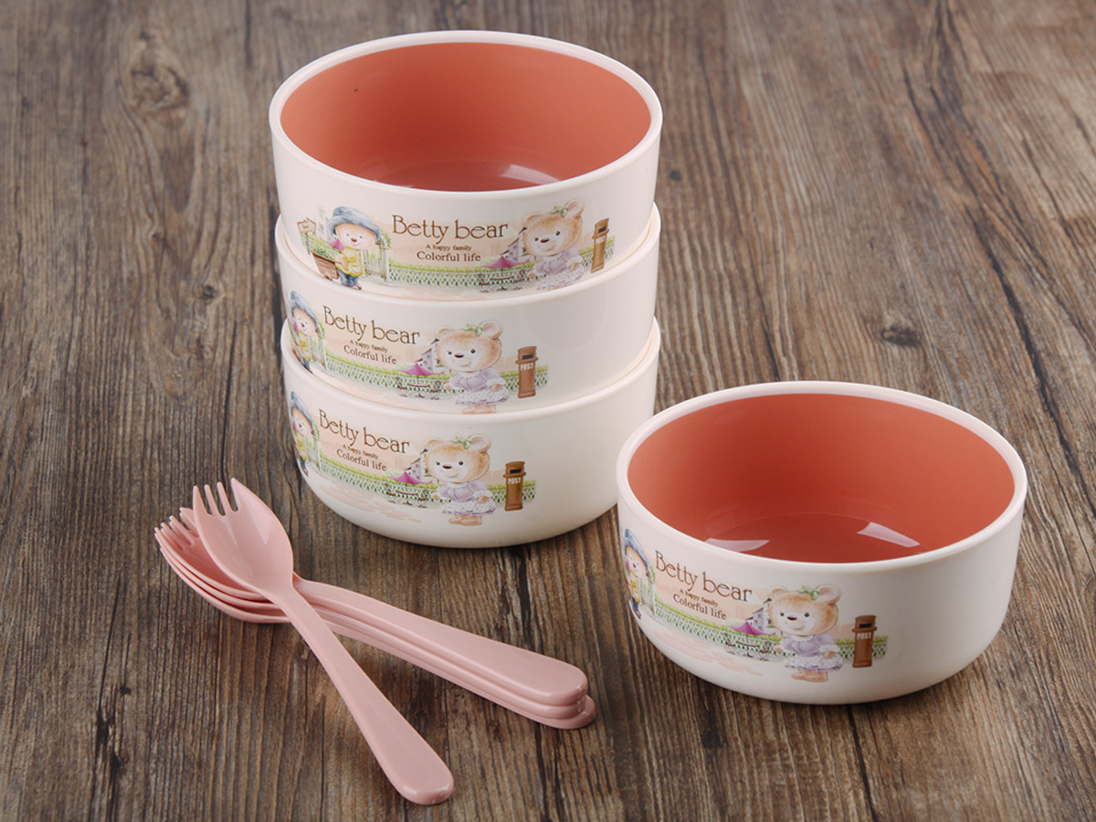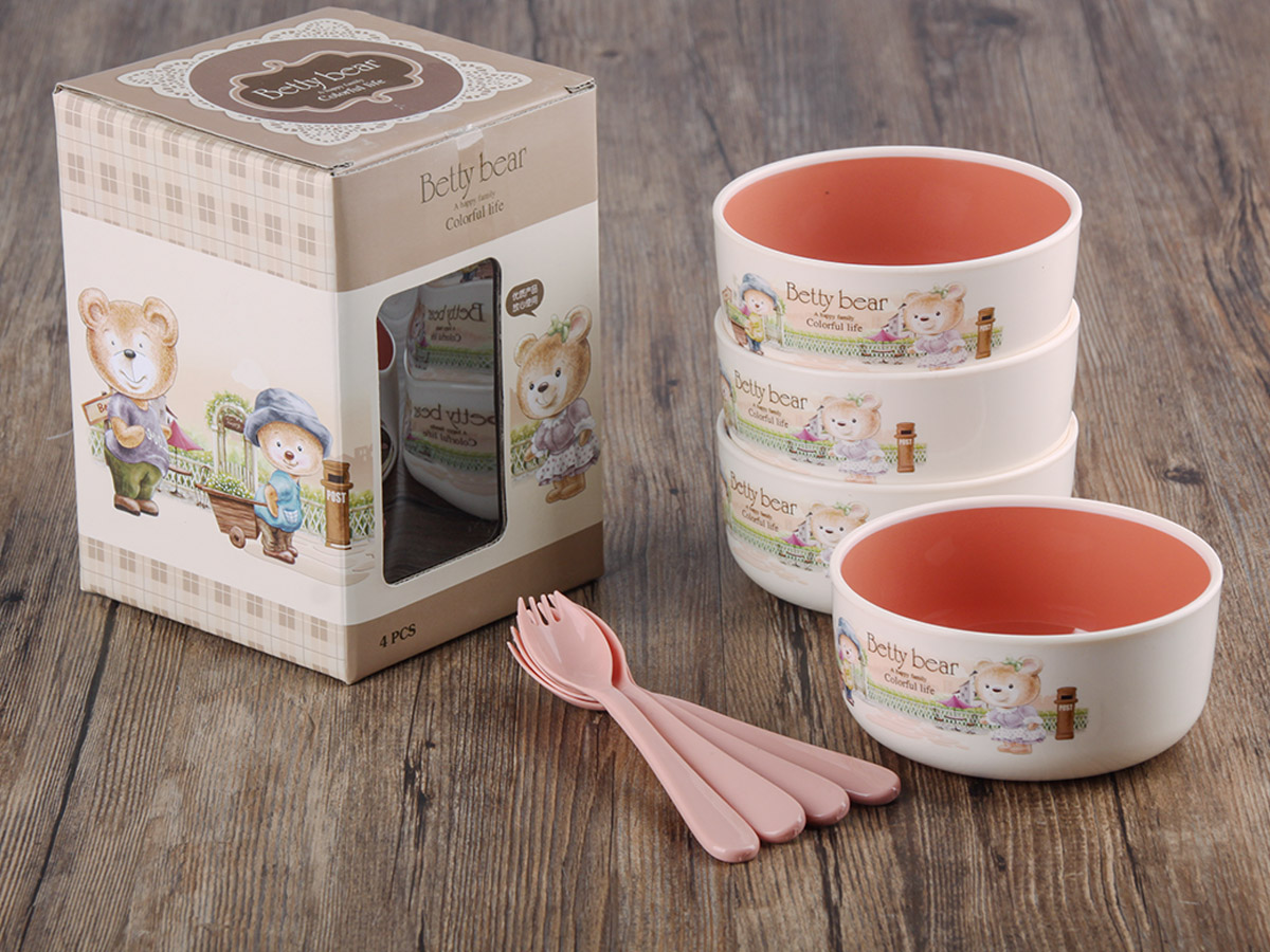 得力熊小號韓式雙色餐碗(4PCS)