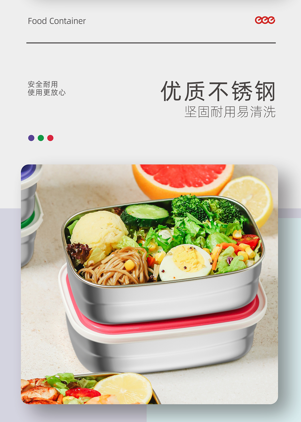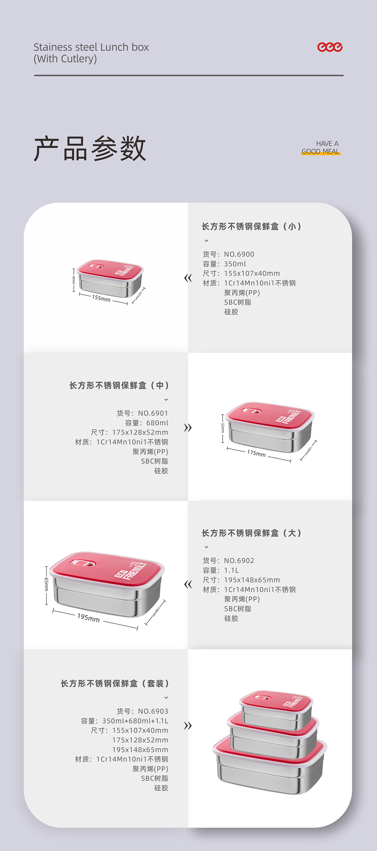 長方形不銹鋼保鮮盒(小/中/大/套裝)2022新色