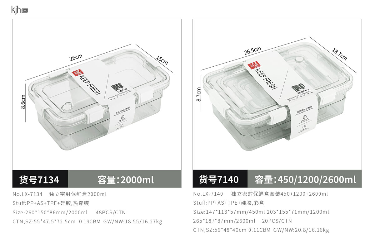LX-7140:147*113*57mm/450ml+203*155*71mm/1200ml+ 265*187*87mm/2600ml