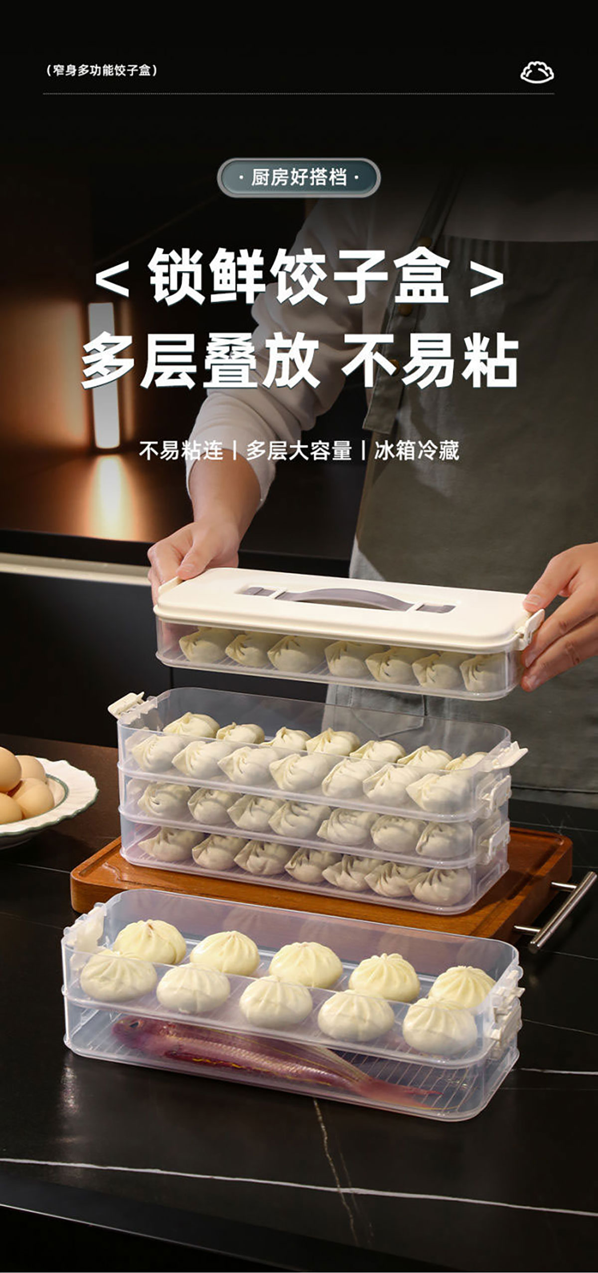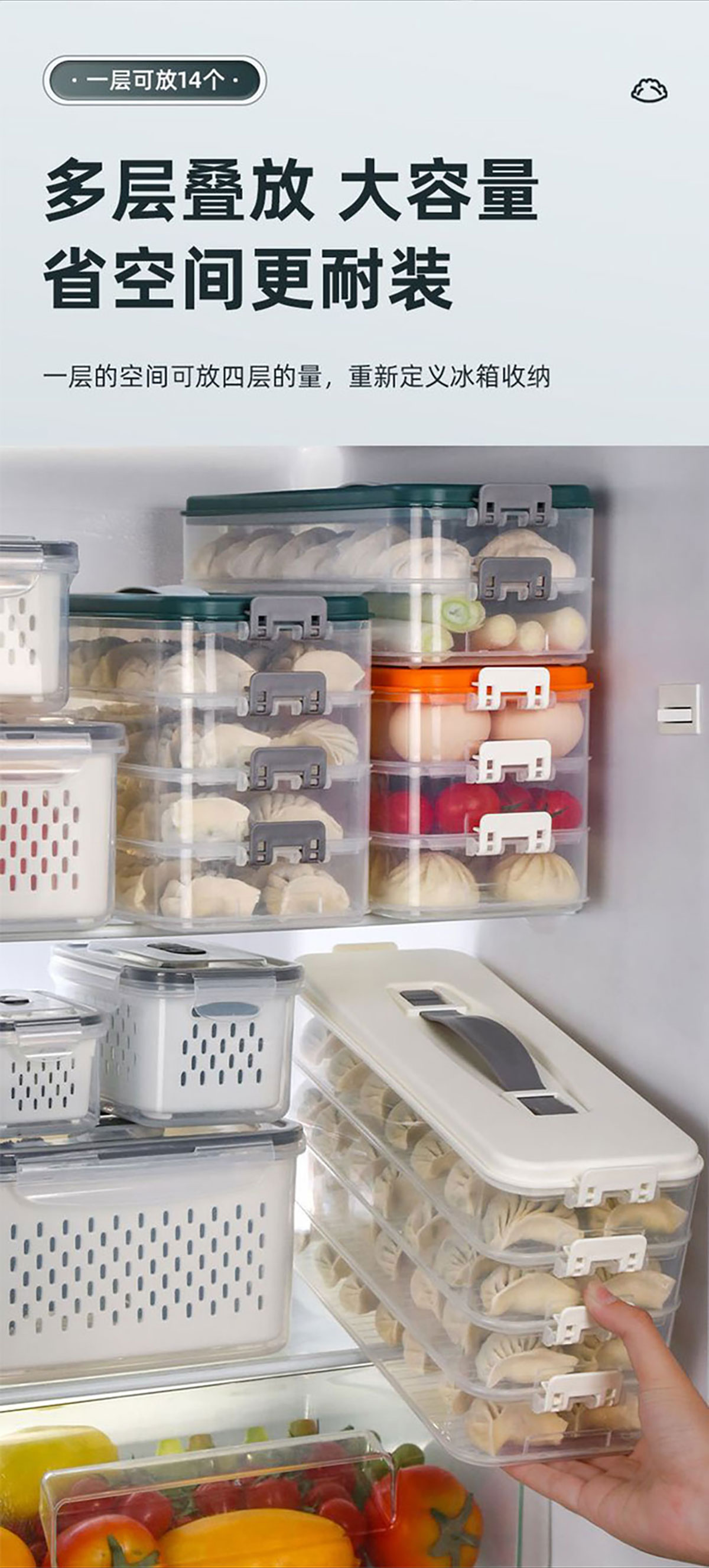 簡系手提餃子收納盒(單層/2層/3層/4層/5層)