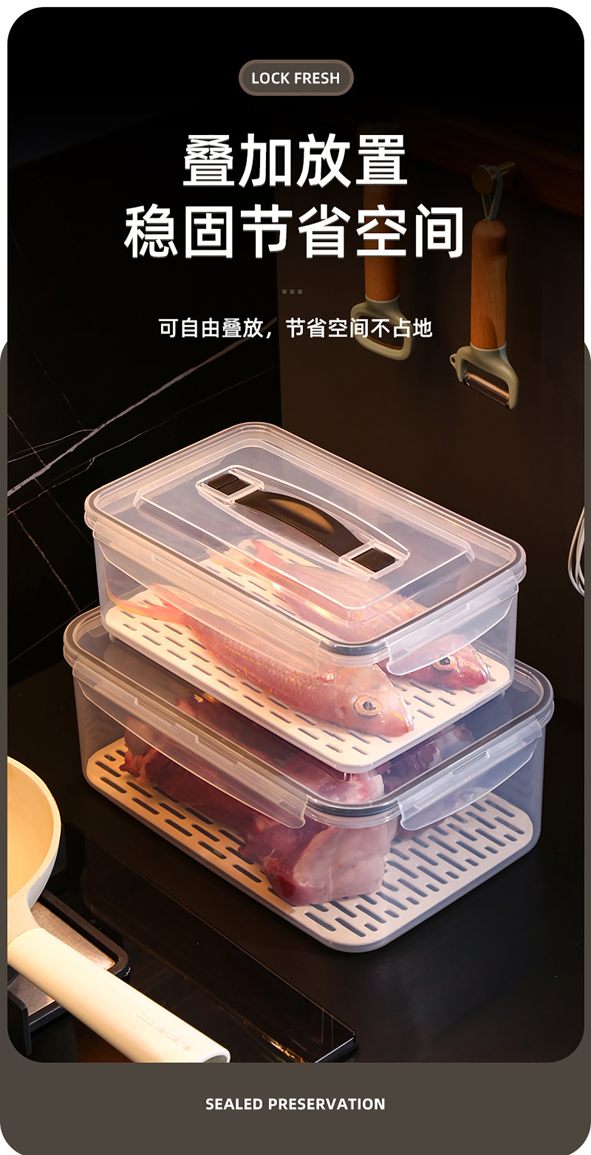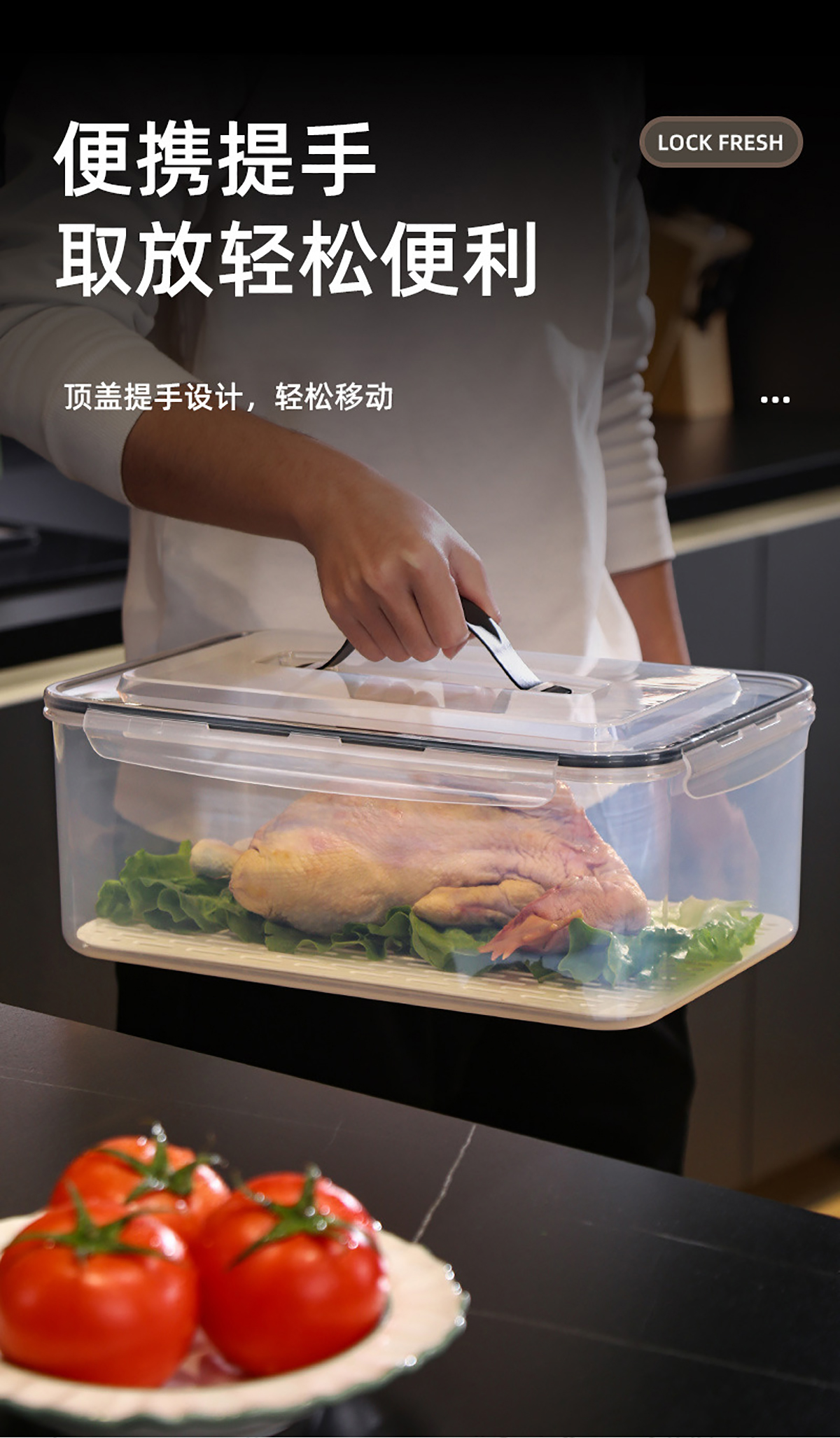 手提密封瀝水板保鮮盒(800nl/1.7L/3.4L/6.0L/10.5L/16.5L)