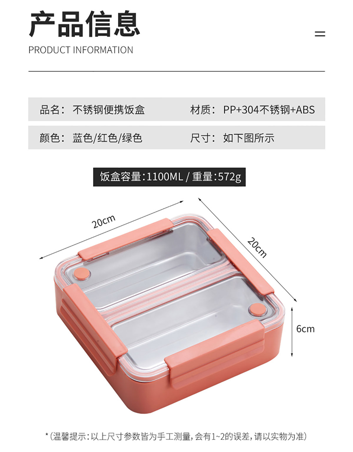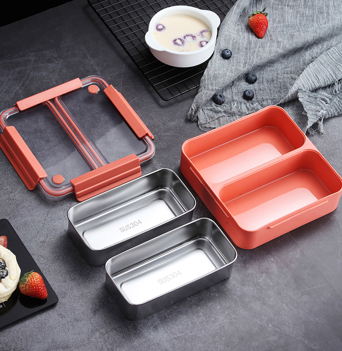 雙內(nèi)格304不銹鋼便當(dāng)盒