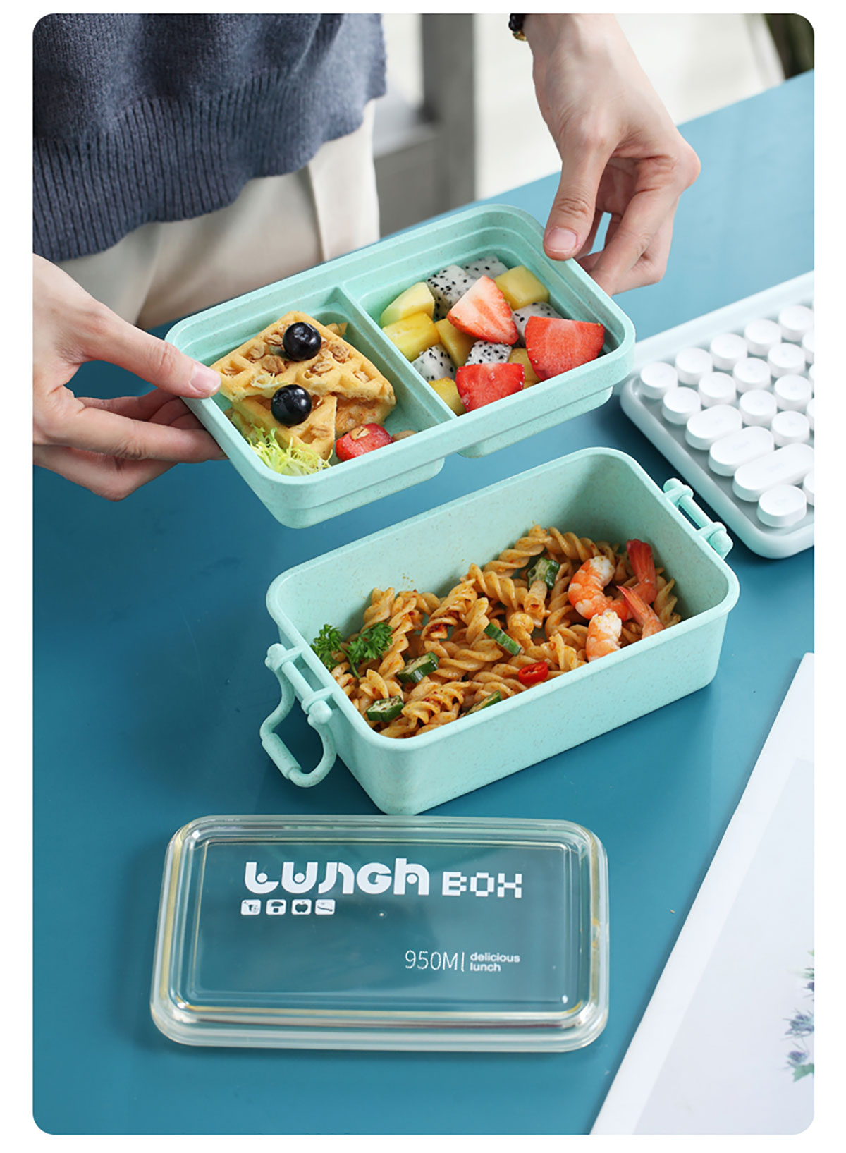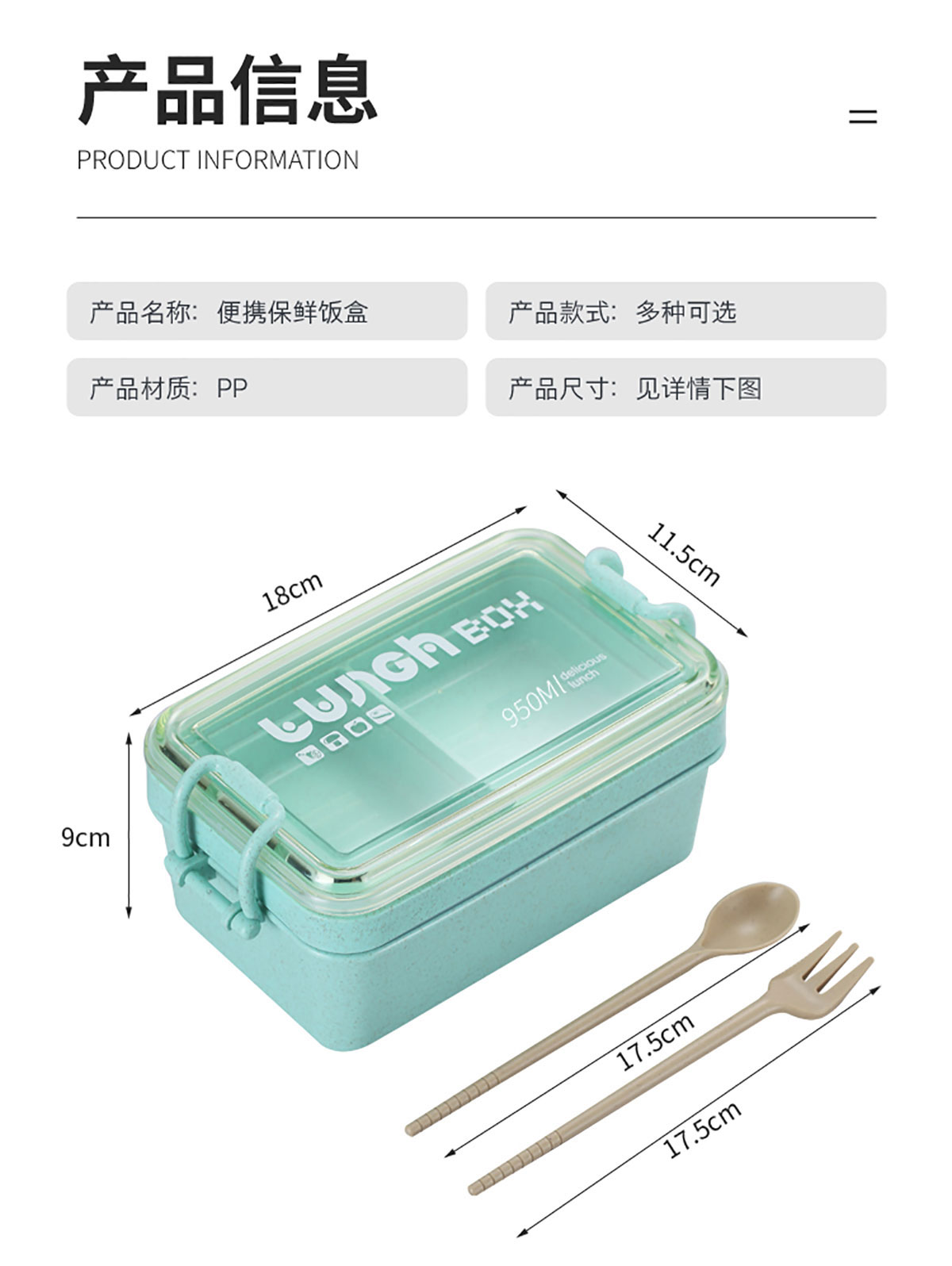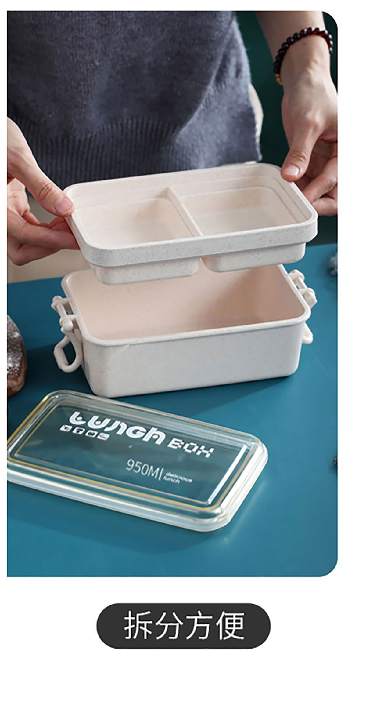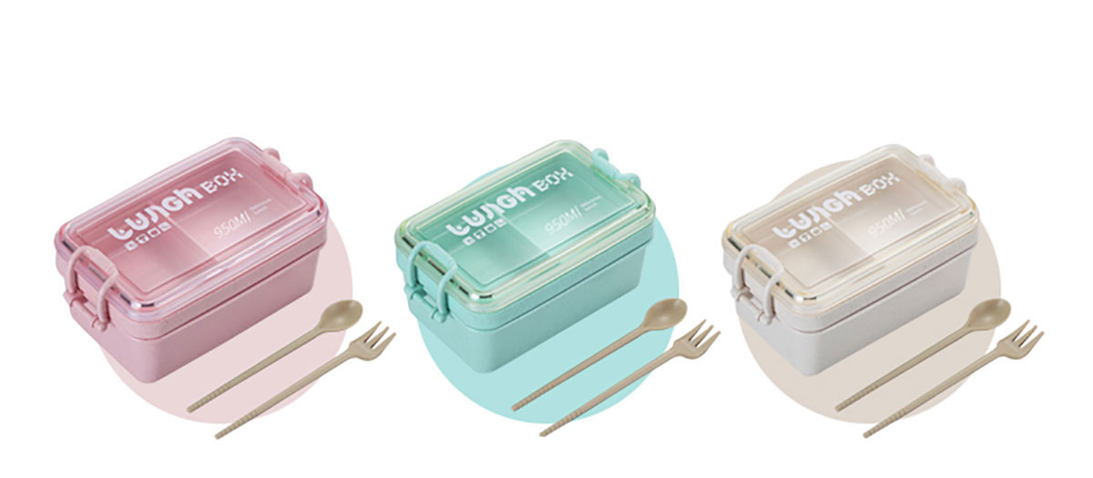 麥秸長方形雙層飯盒