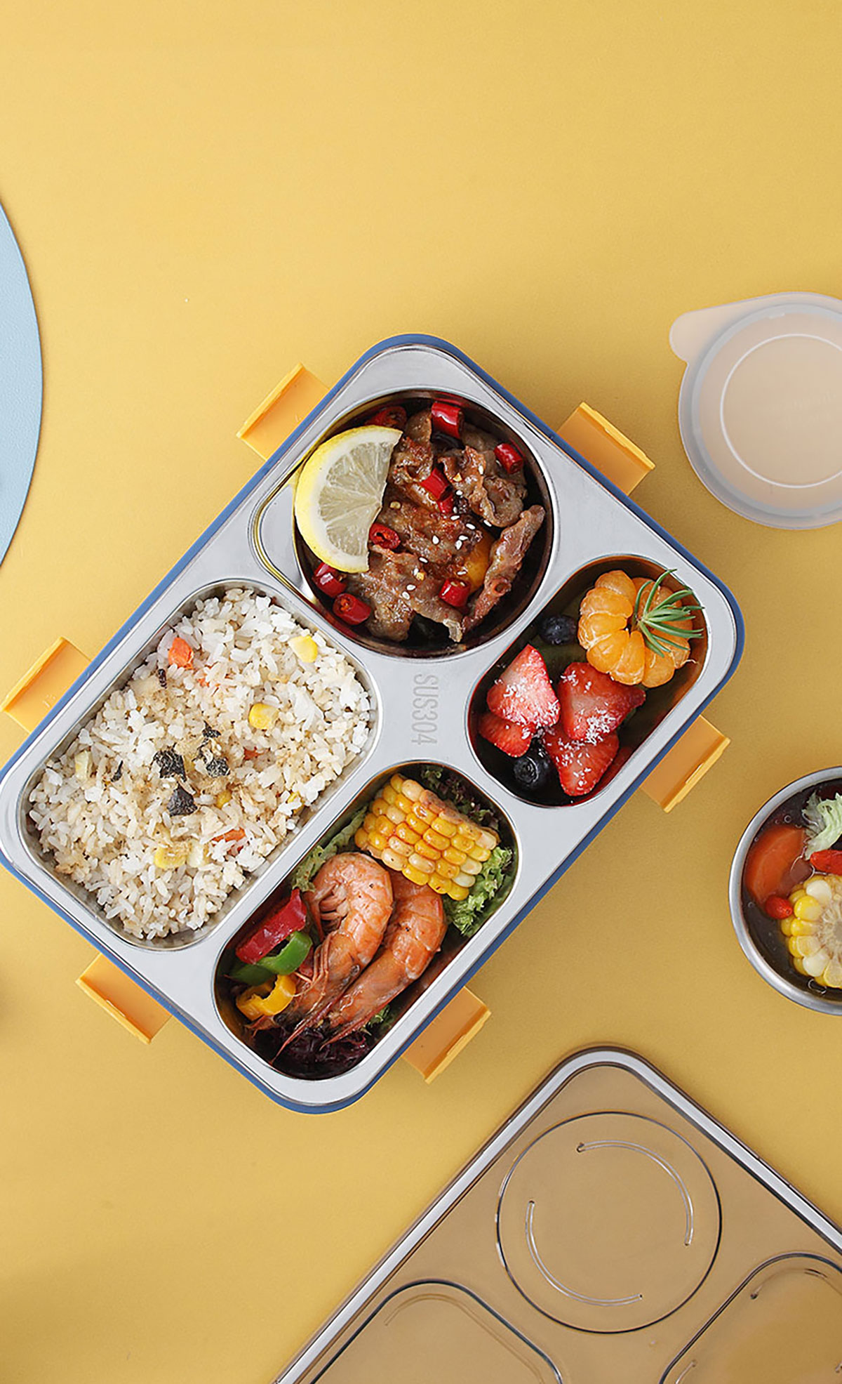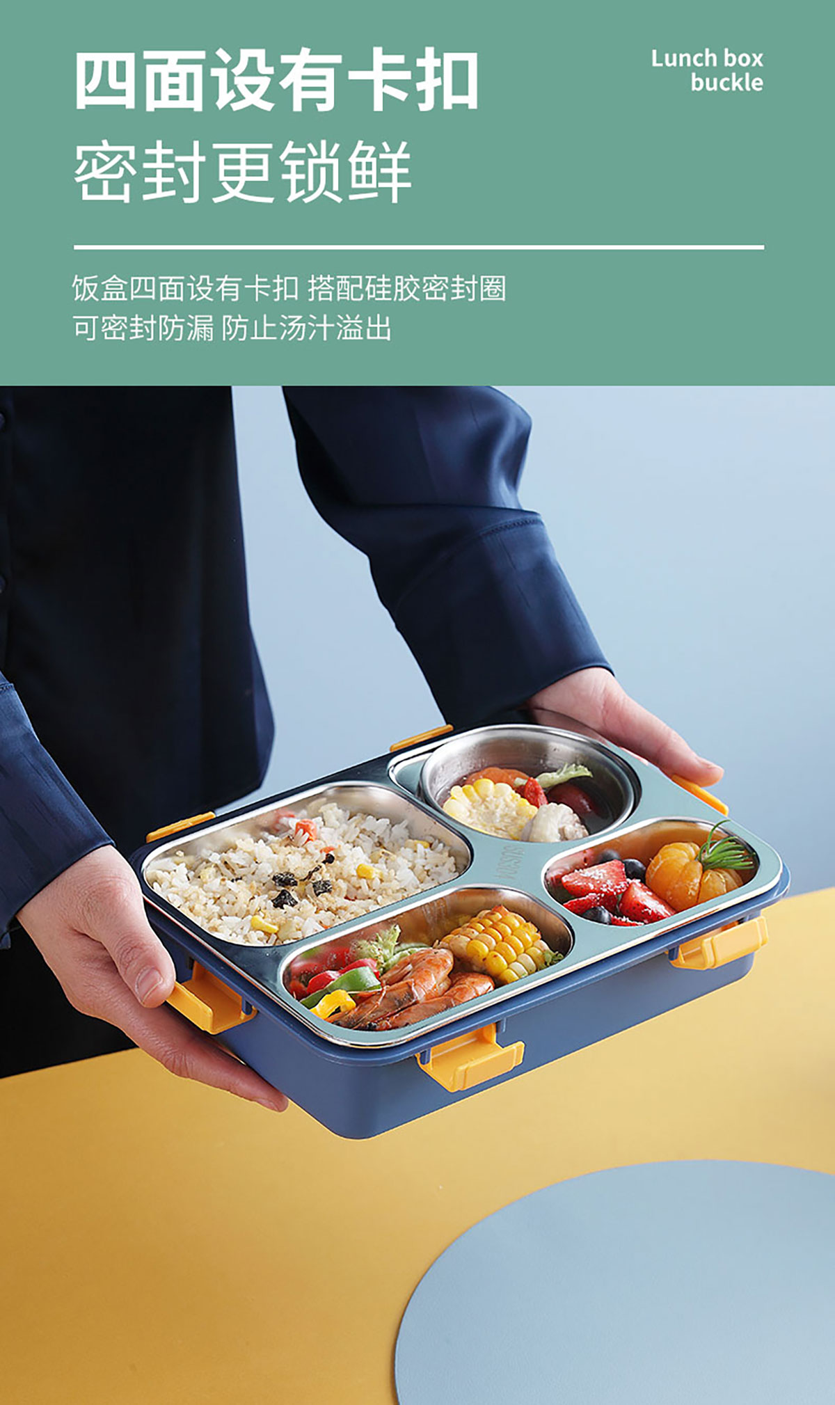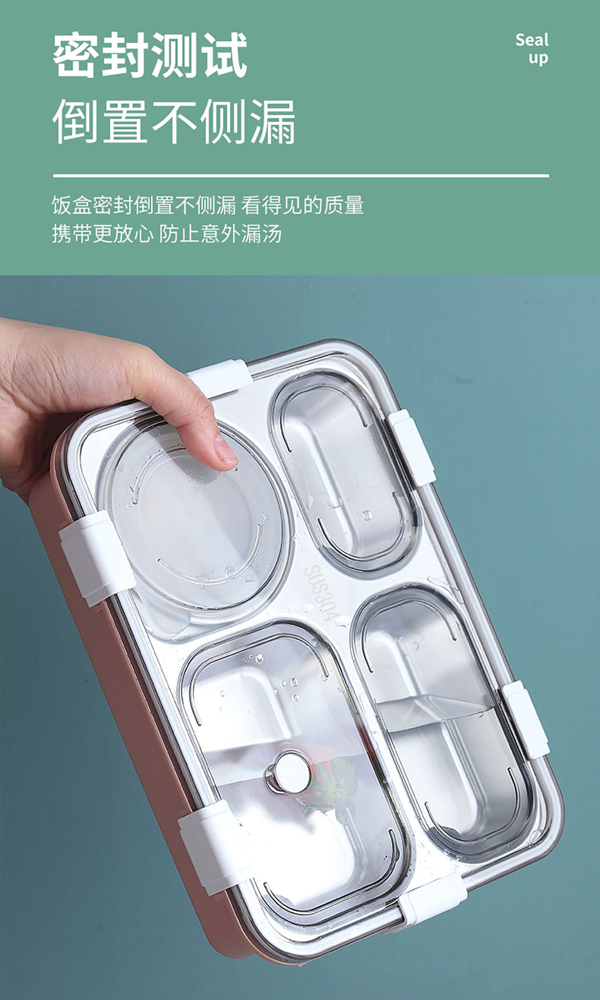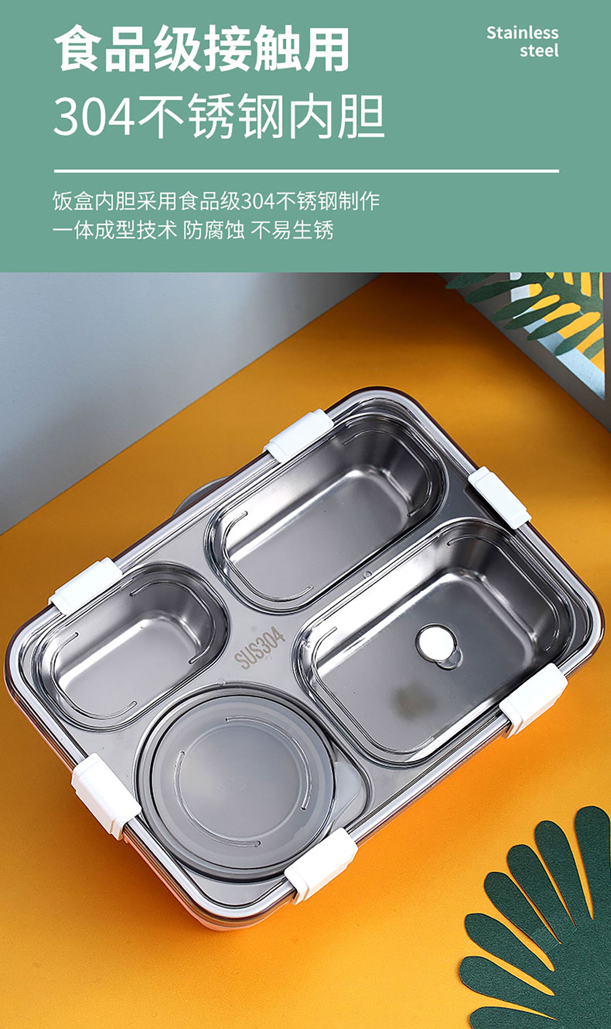 304不銹鋼飯盒四格帶湯碗 850ml+150ml
