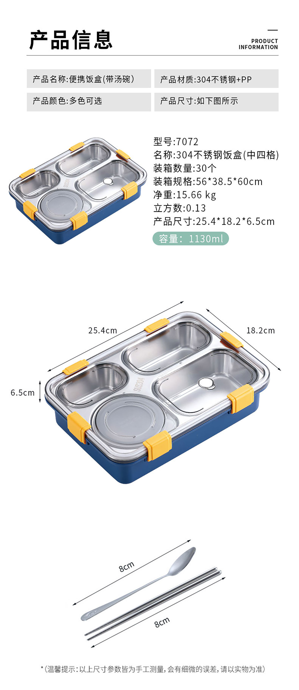 Stuff:304不銹鋼+PP+硅膠彩盒
