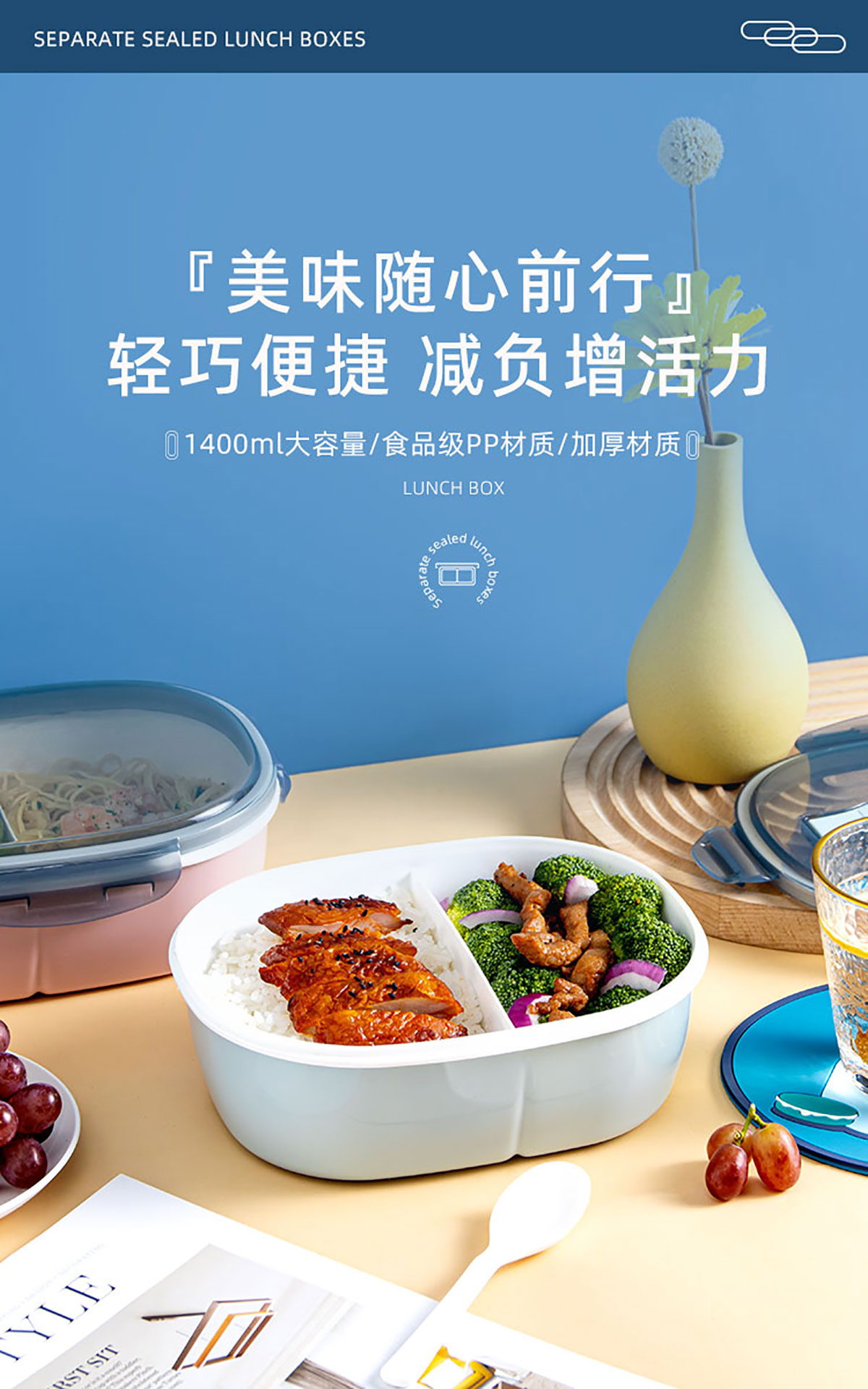 小簡(jiǎn)蛋形抗菌飯盒 1100ml/1400ml