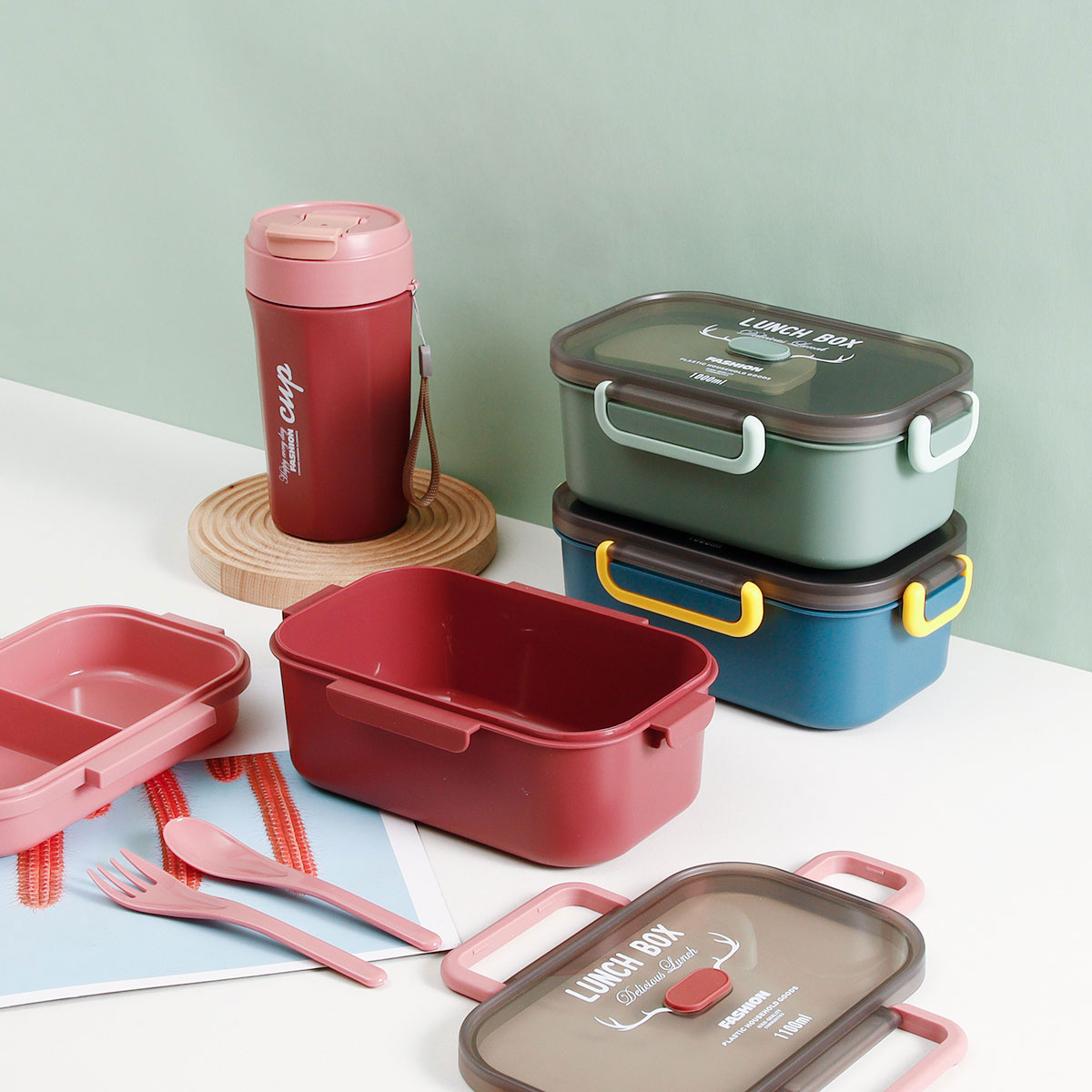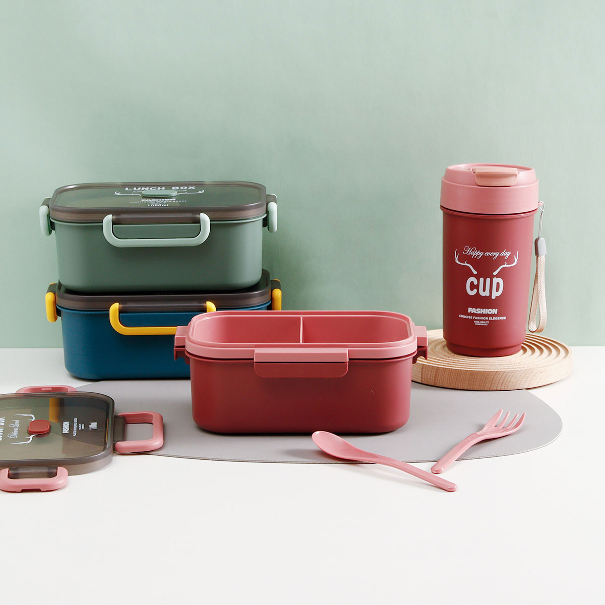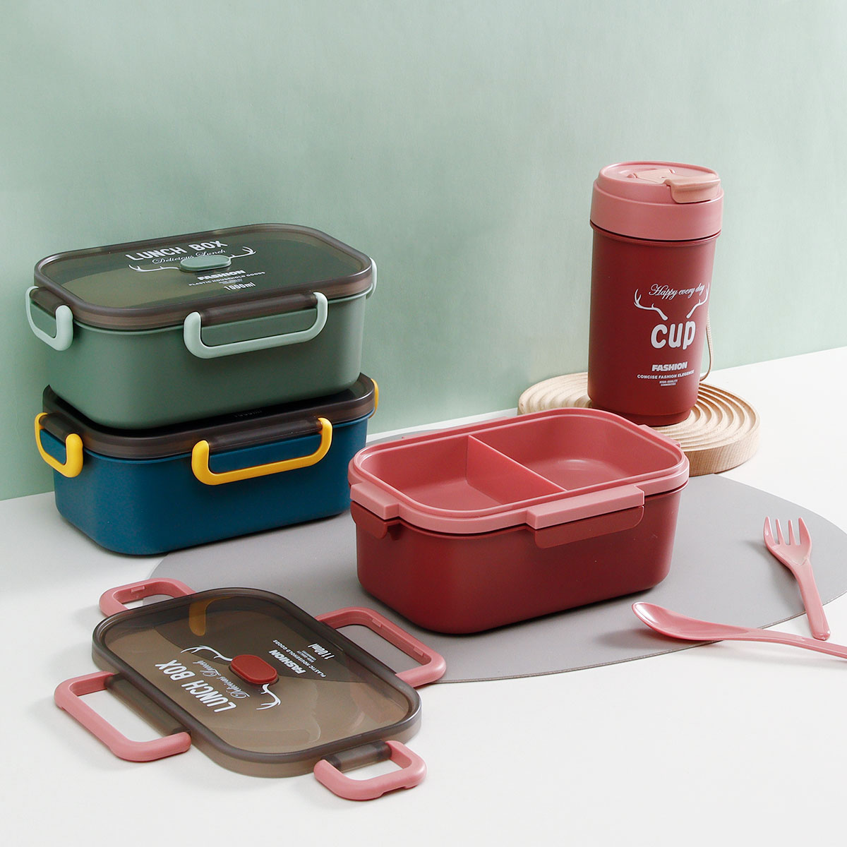 長方雙層/單層密封飯盒+圓形/八角隨行杯