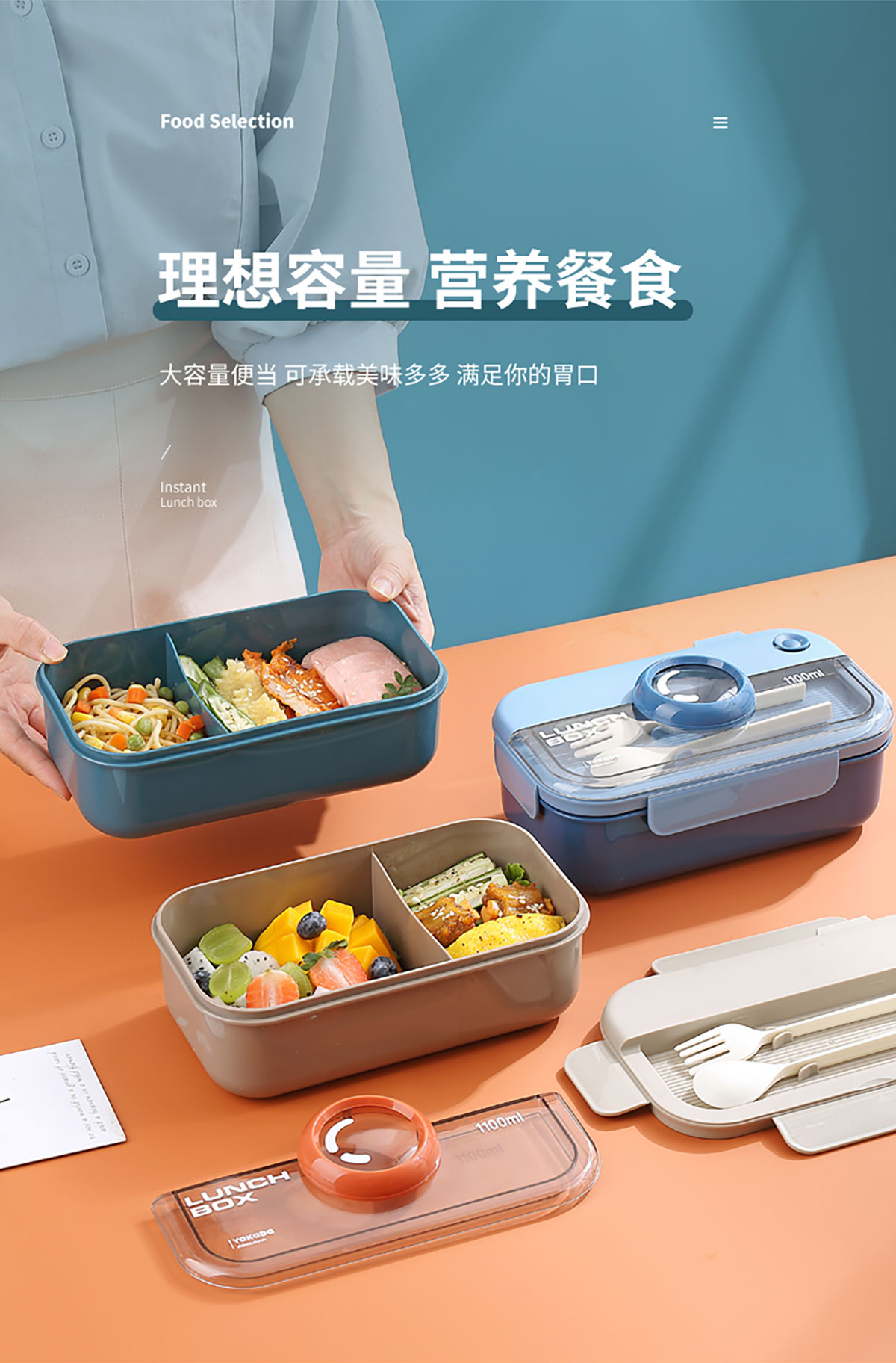 長(zhǎng)方相機(jī)蓋飯盒1100ml