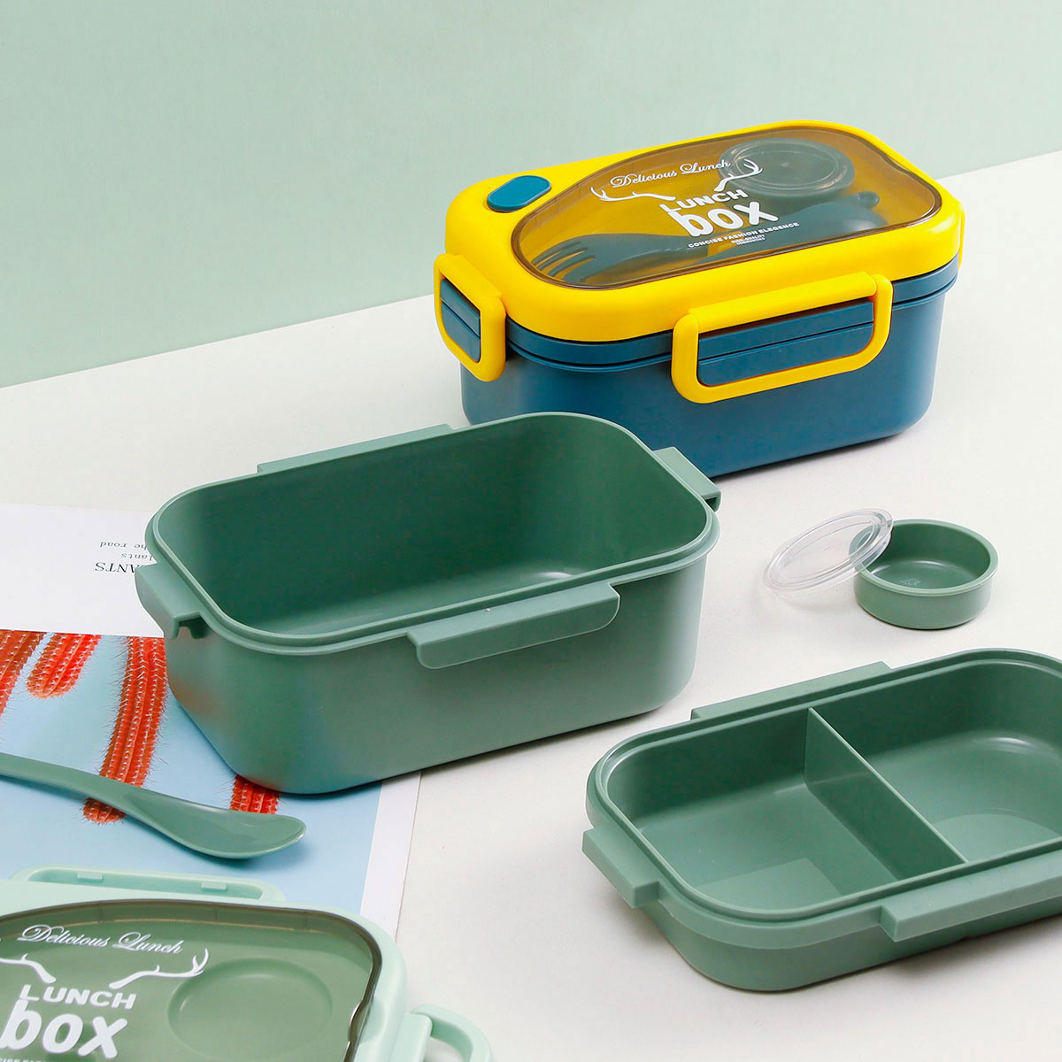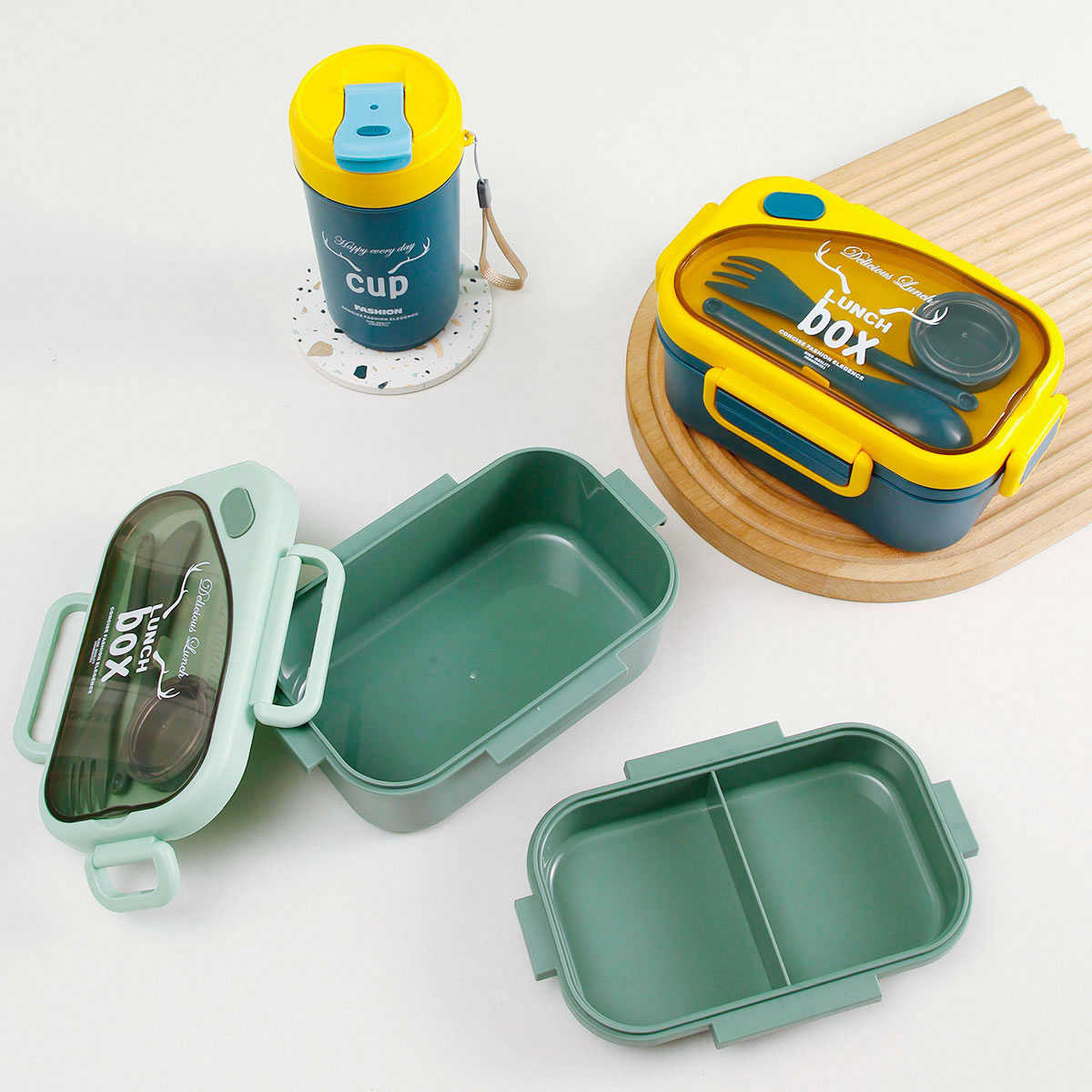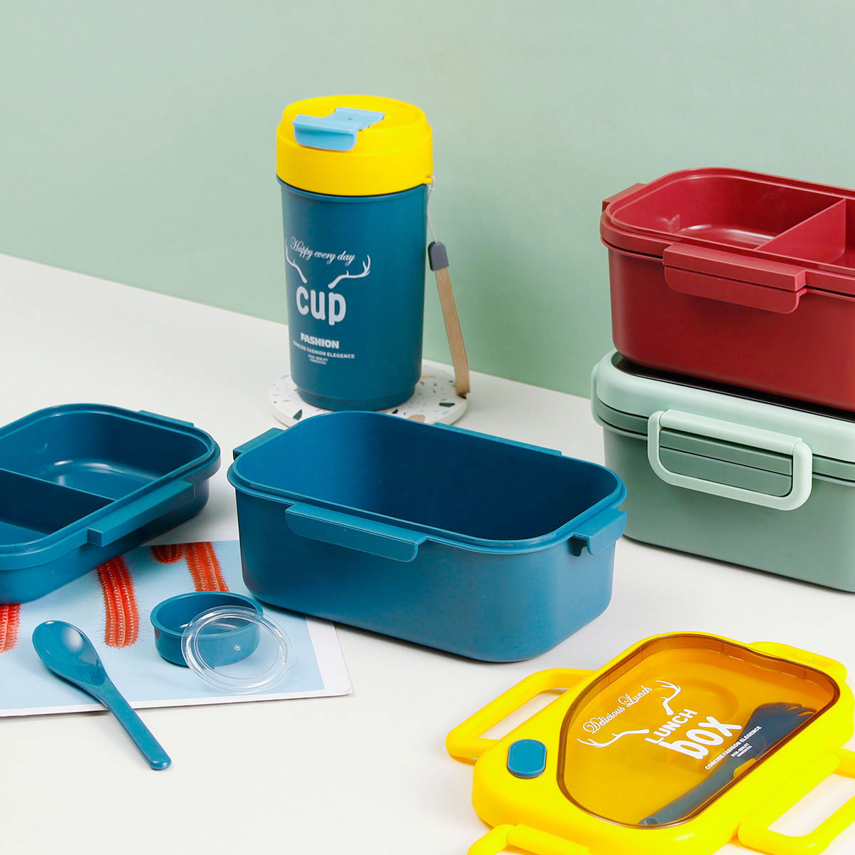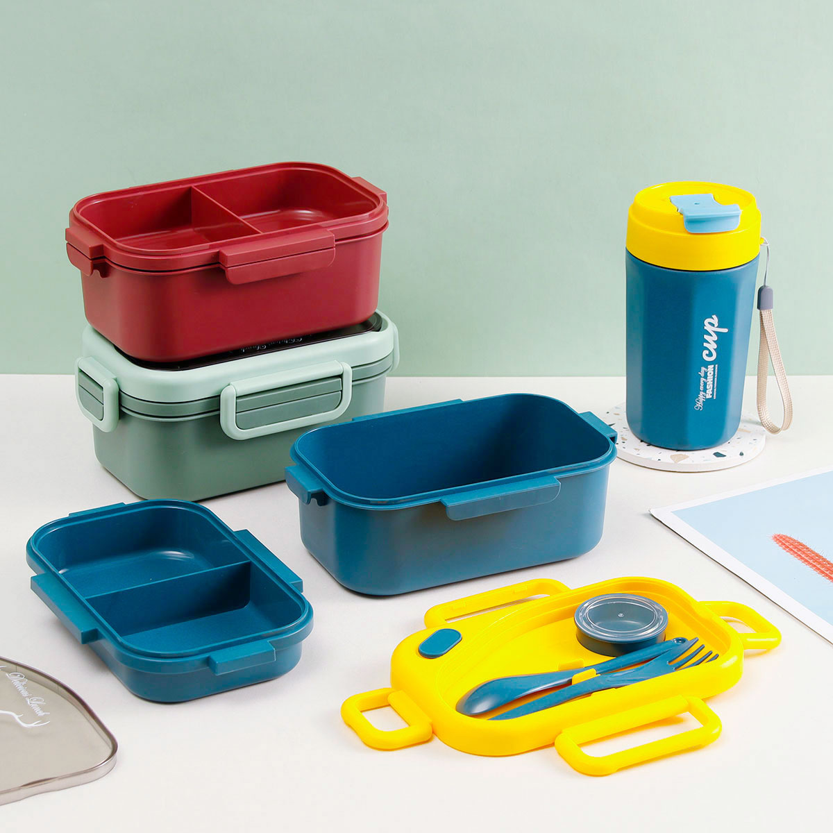品悅長(zhǎng)方雙層密封飯盒(1100ml)(含醬料盒)+圓形/八角隨行杯(500ml)