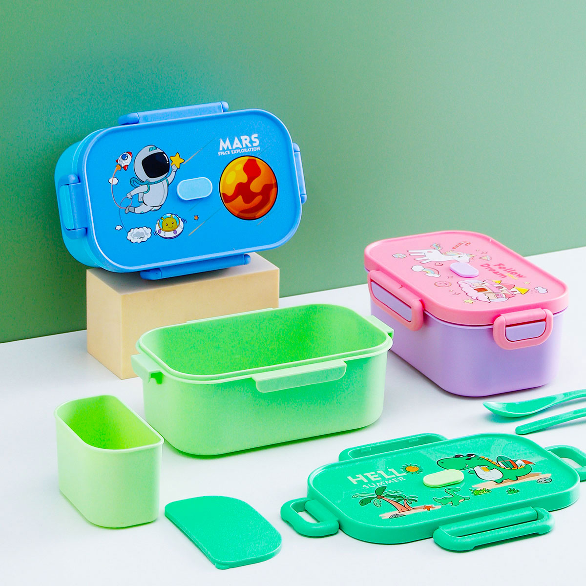 卡通長方單層/單層分格/單層含格子/雙層飯盒