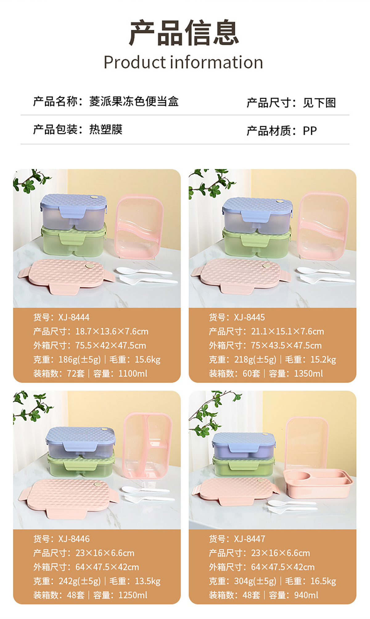 Size: HH-XJ8444(二格小號(hào)):187*136*76mm/1100ml