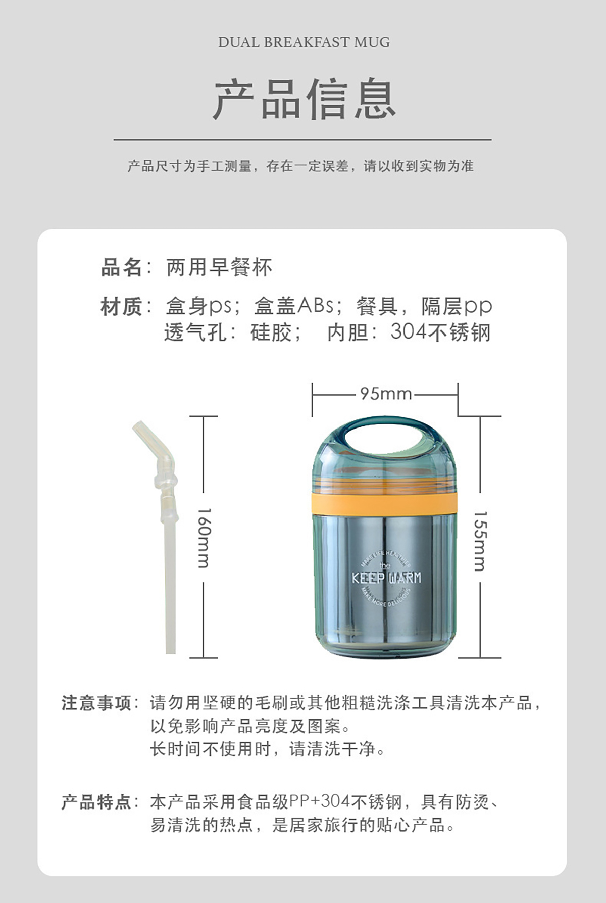 Size: 95*155mm/吸管:160mm
