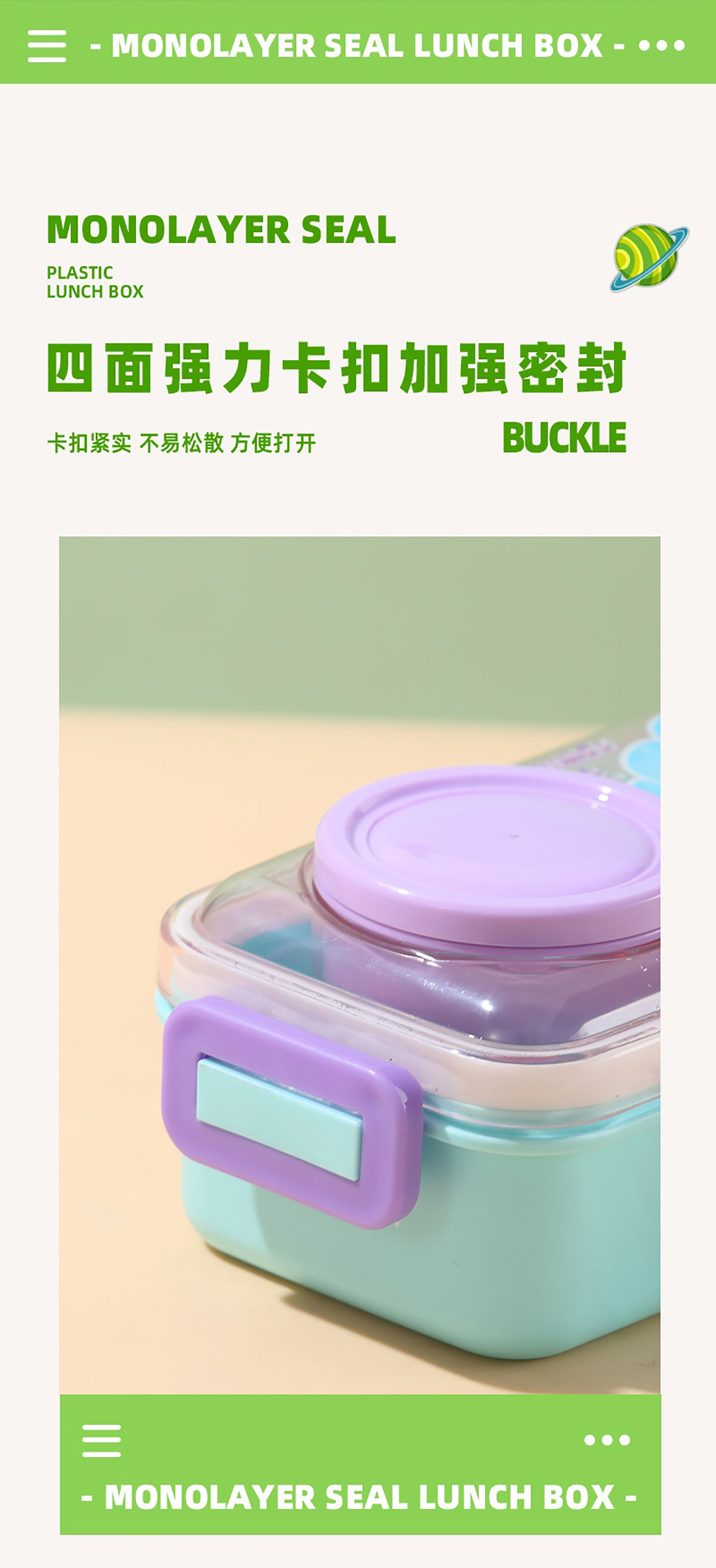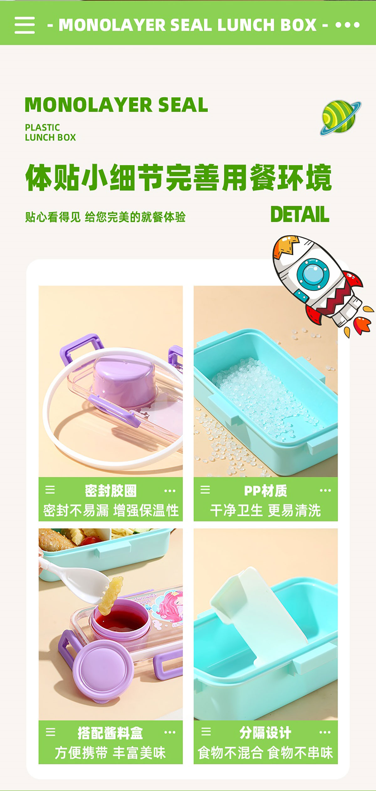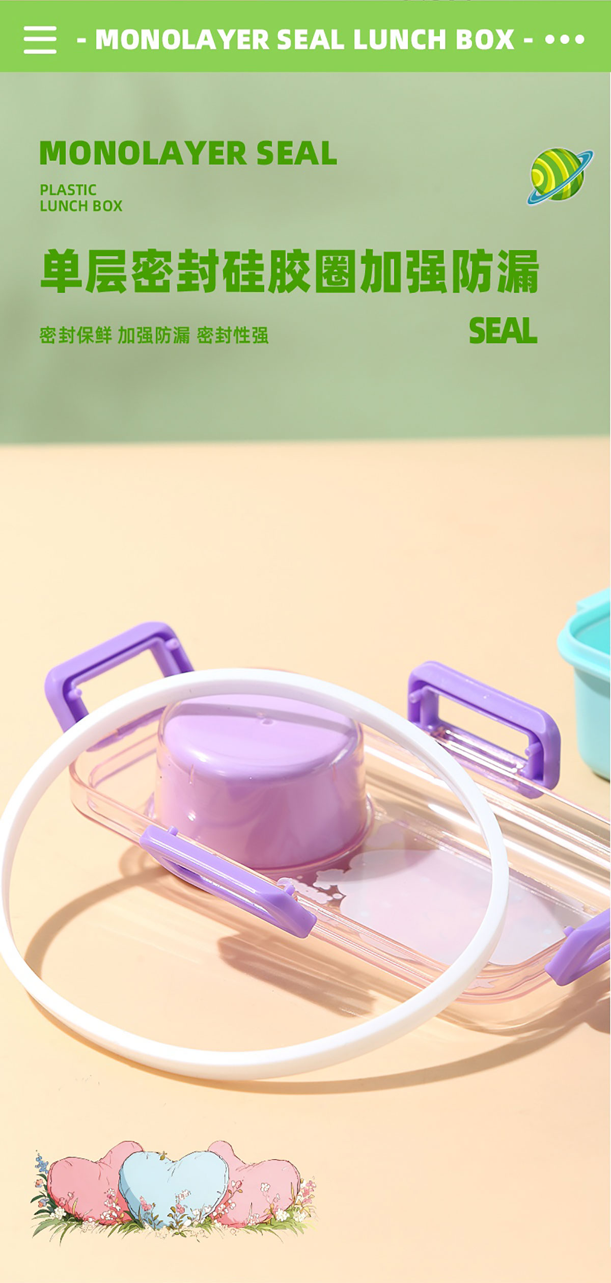 彩光卡通密封餐盒(單格500ml+外置醬料杯80ml+pp勺)