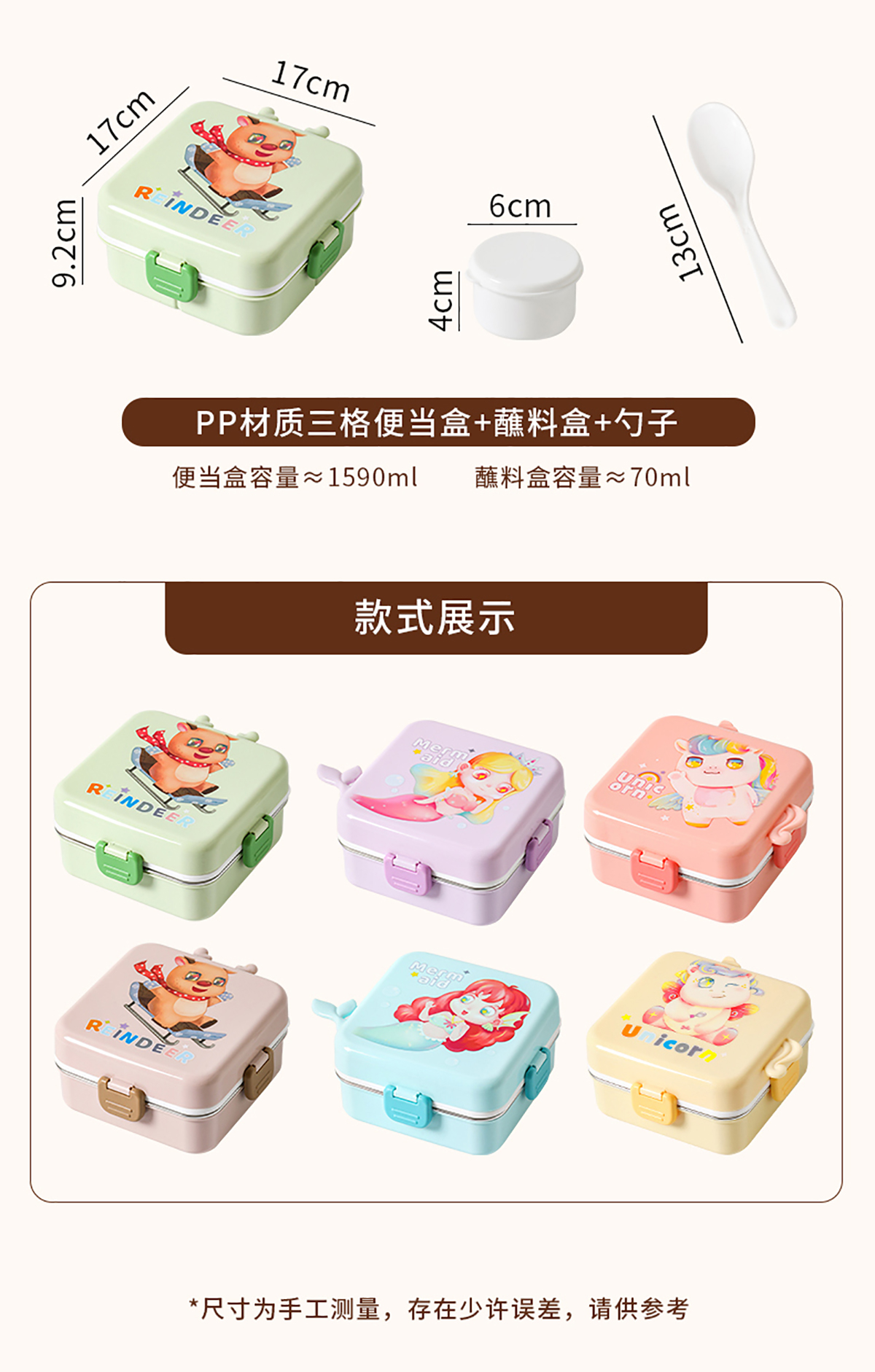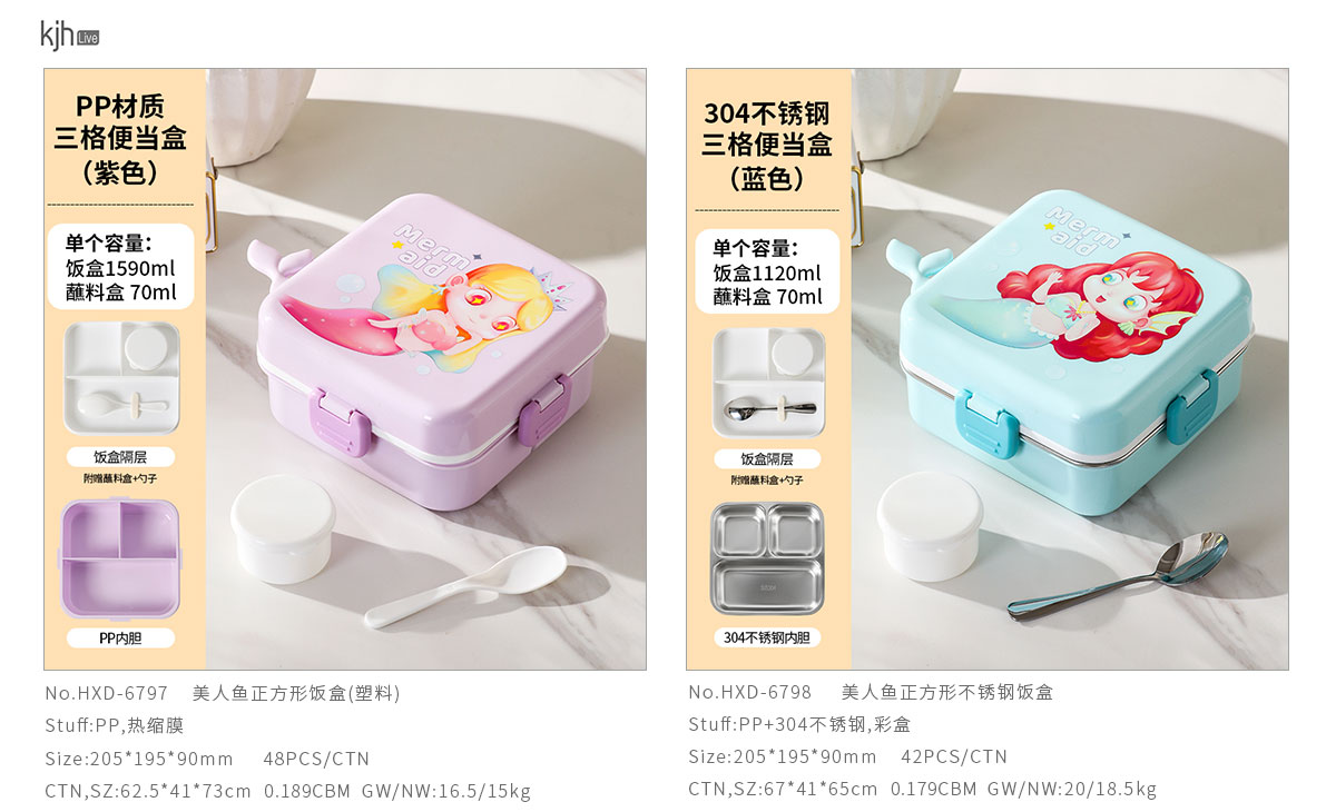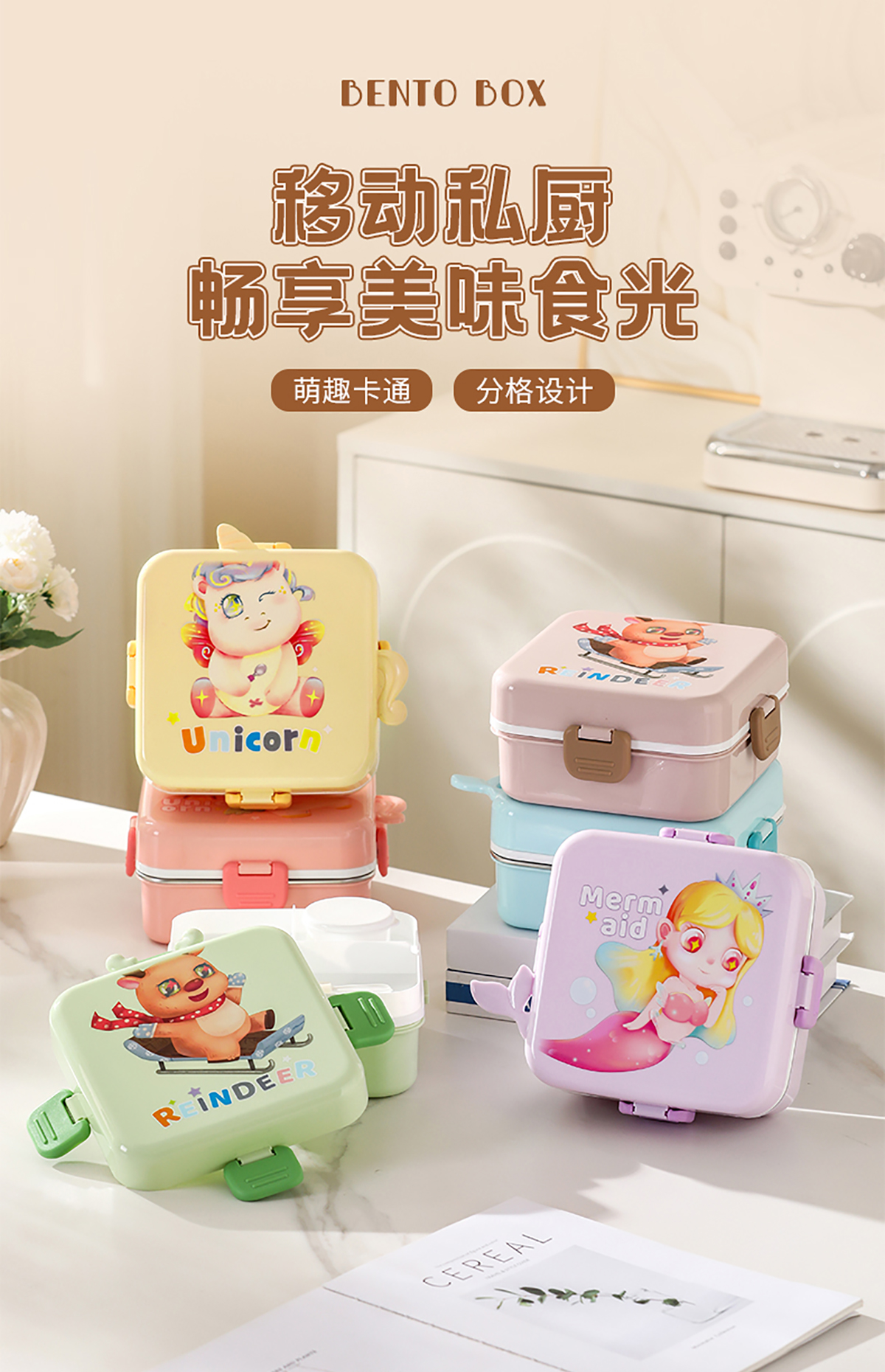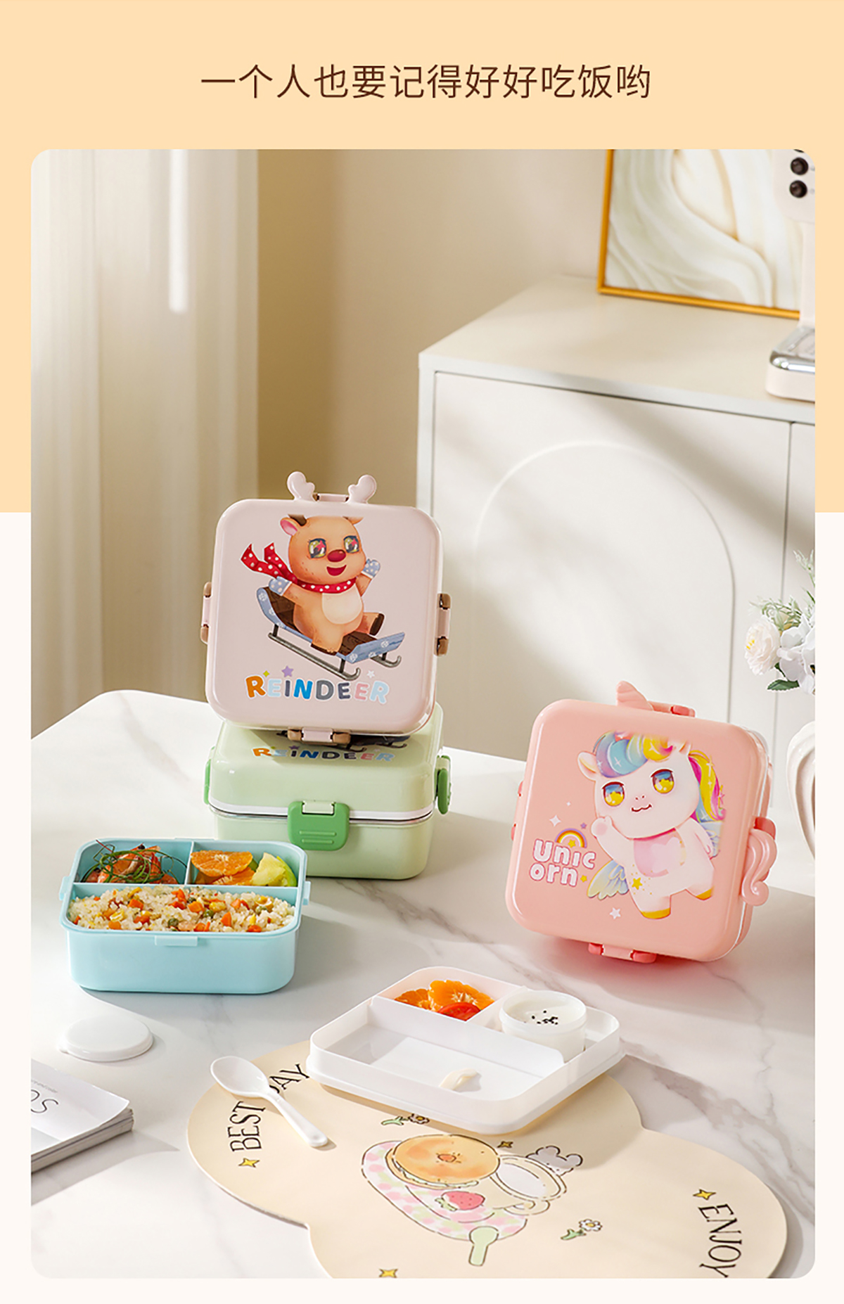 獨(dú)角獸/馴鹿/美人魚(yú)正方形飯盒(塑料/不銹鋼)