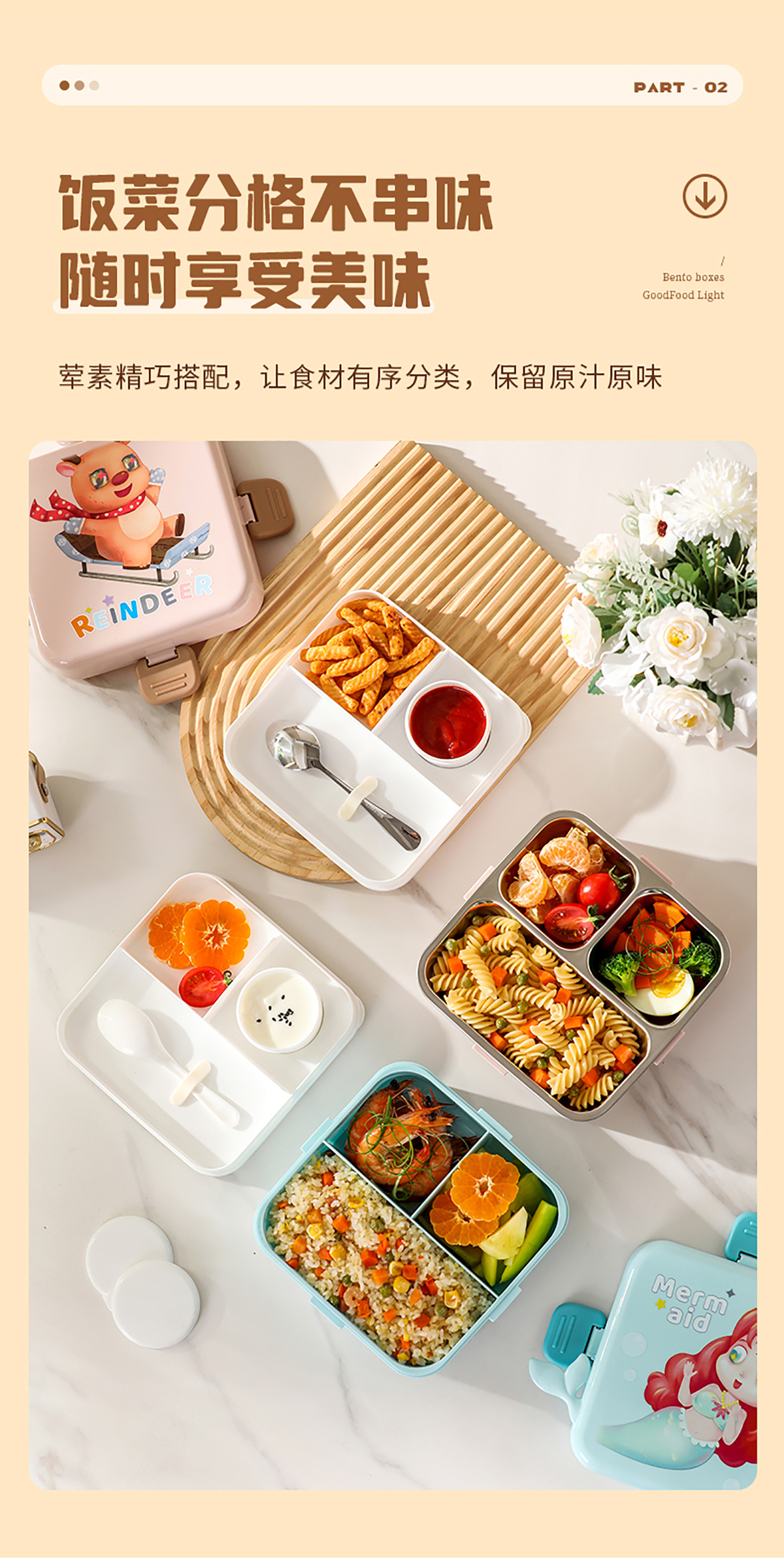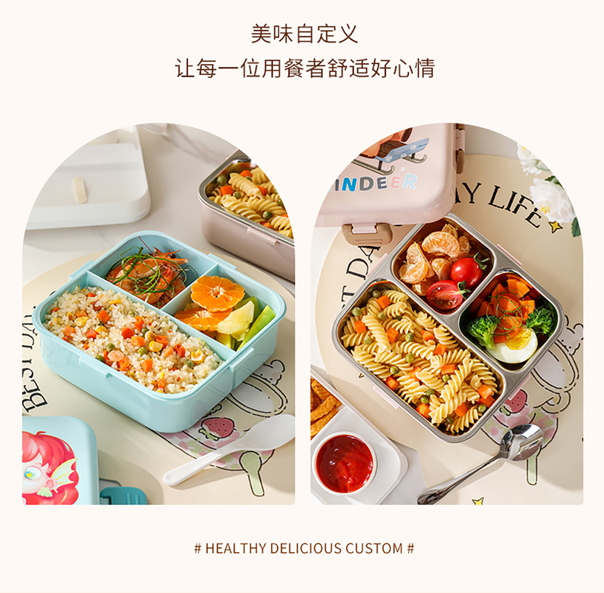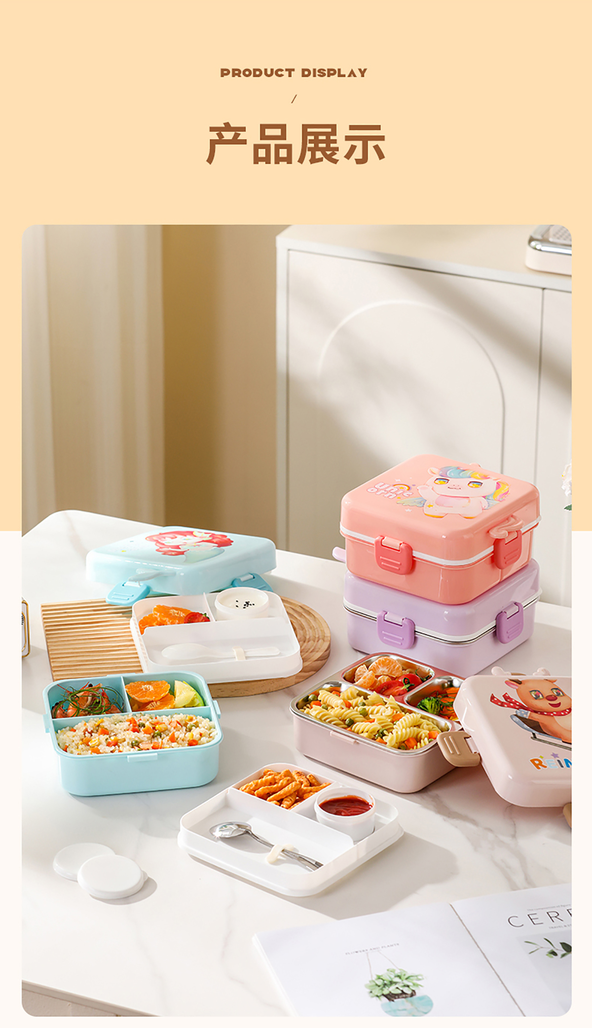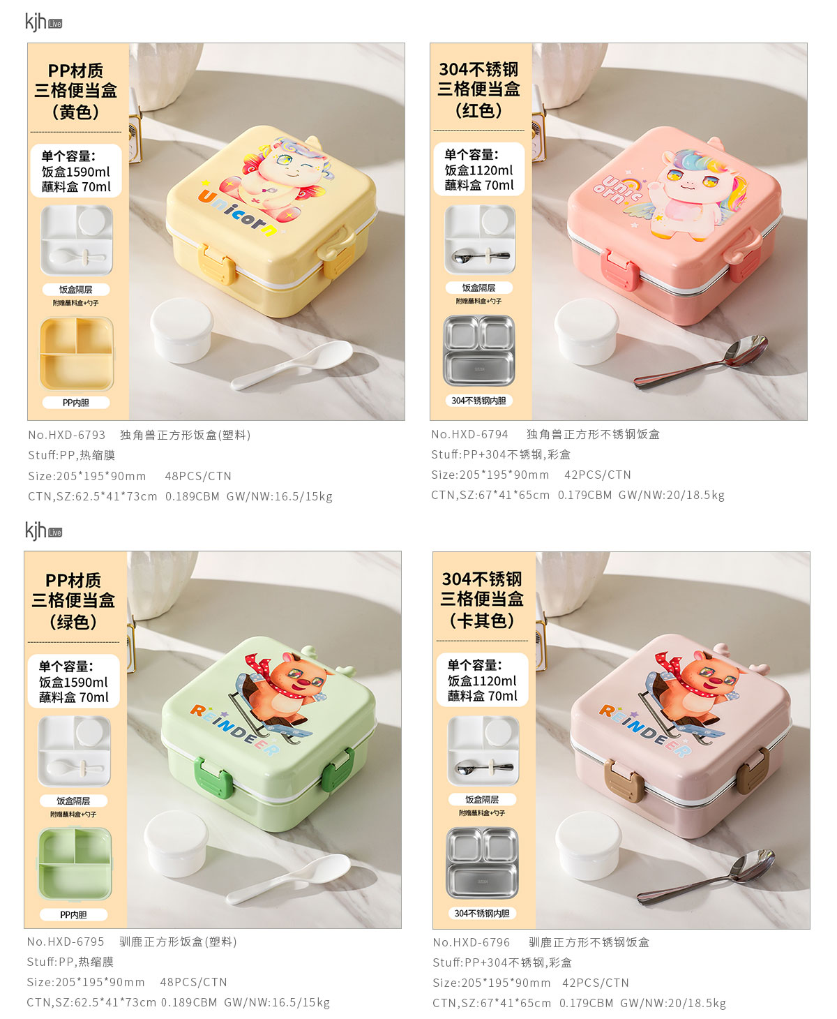 獨(dú)角獸/馴鹿/美人魚(yú)正方形飯盒(塑料/不銹鋼)