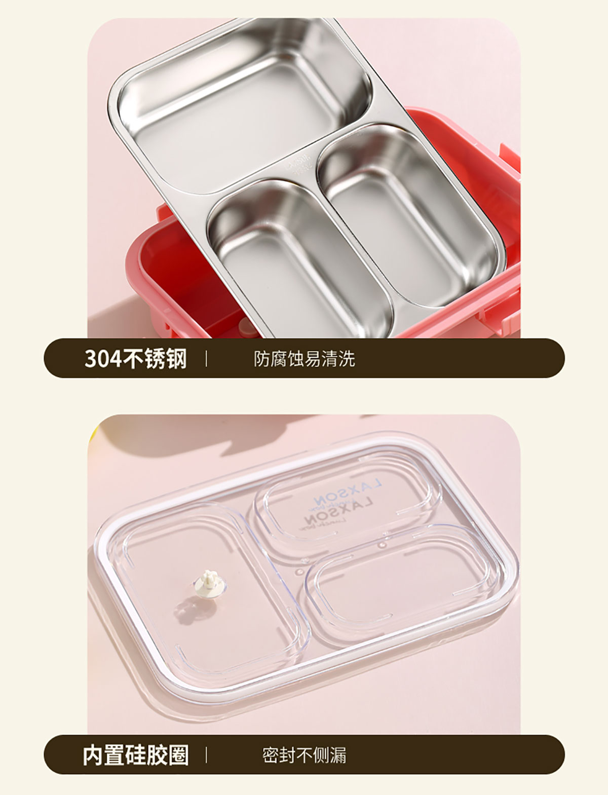 LX-7072A(四格+不銹鋼碗):254*182*65mm
