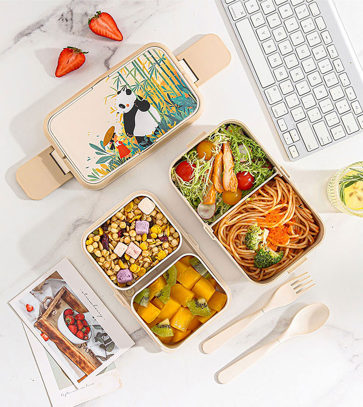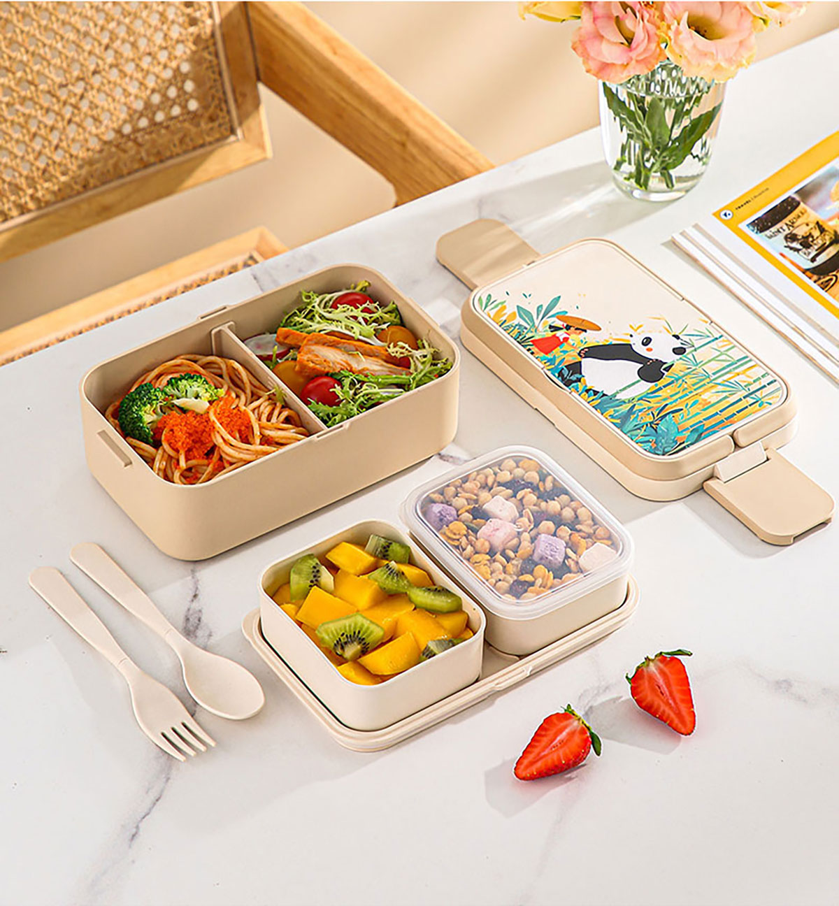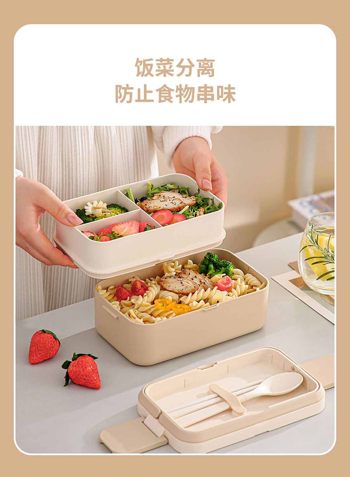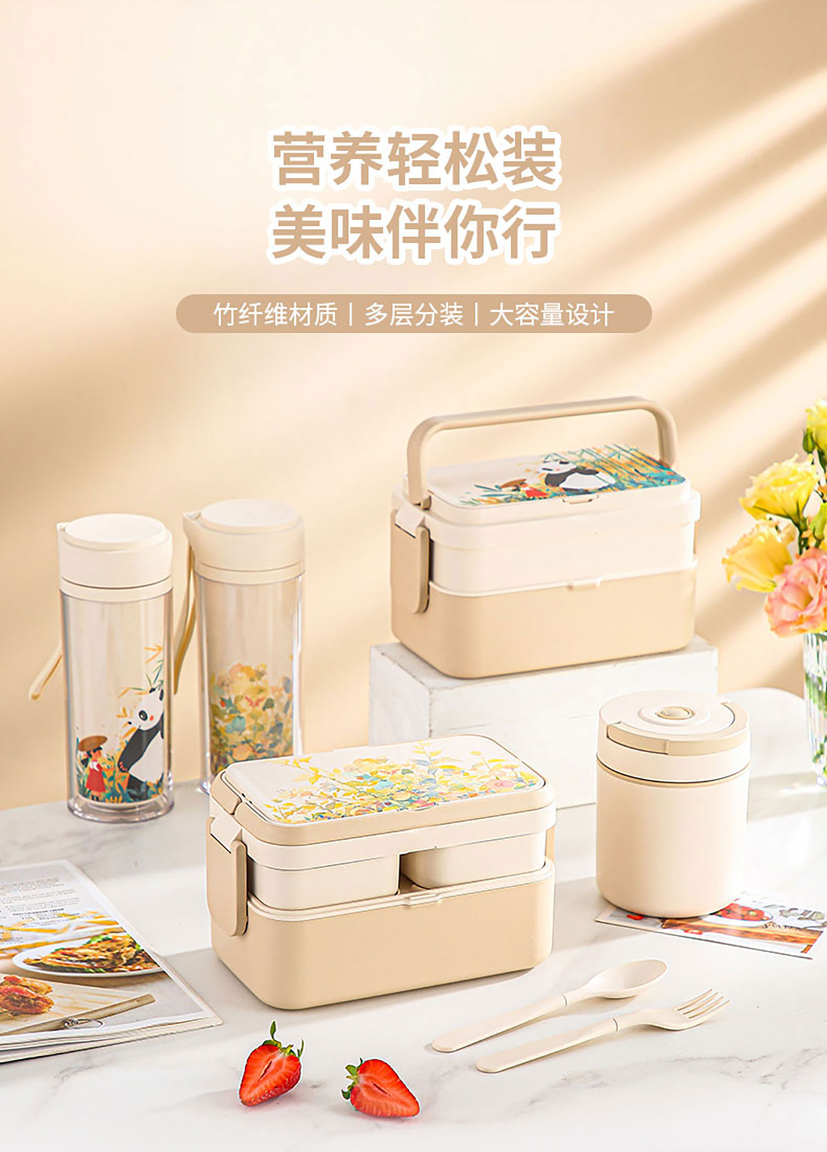 纖竹米吉二合一/三合一雙層飯盒/雙層悅欣杯/湯杯 米白清裝