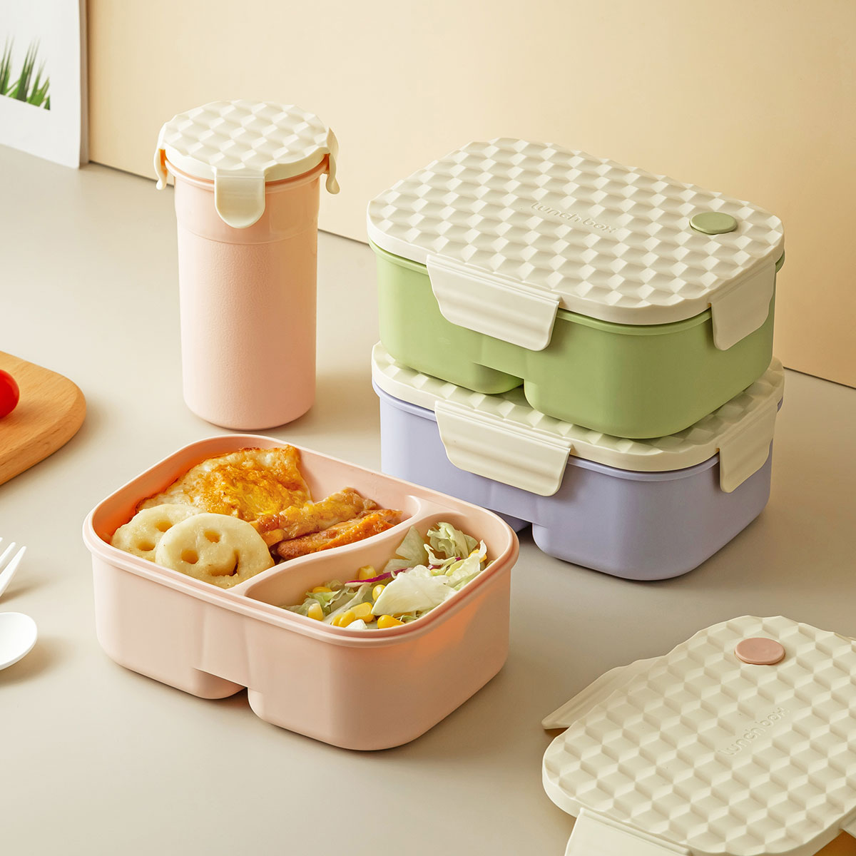 小簡小長方套裝飯盒