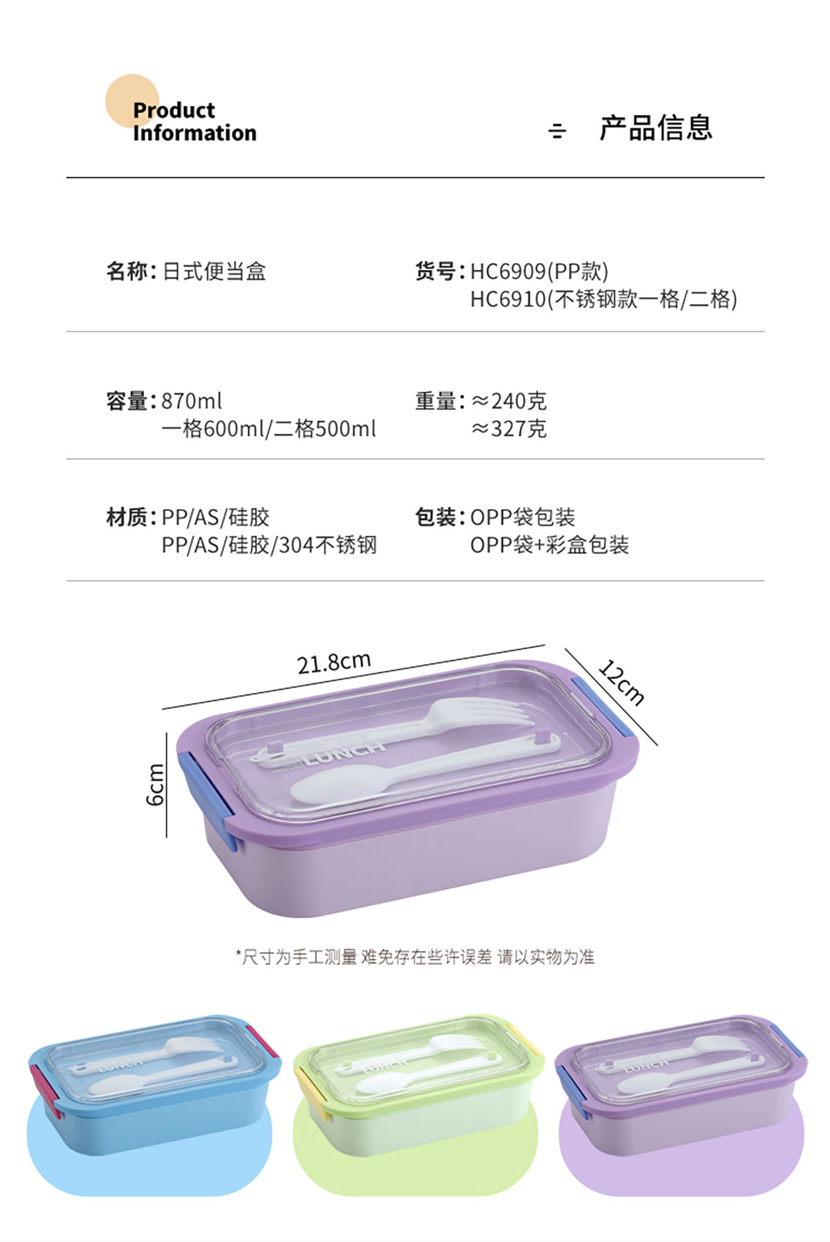 SWY-HC6909(PP款二格):218*120*60mm/870ml