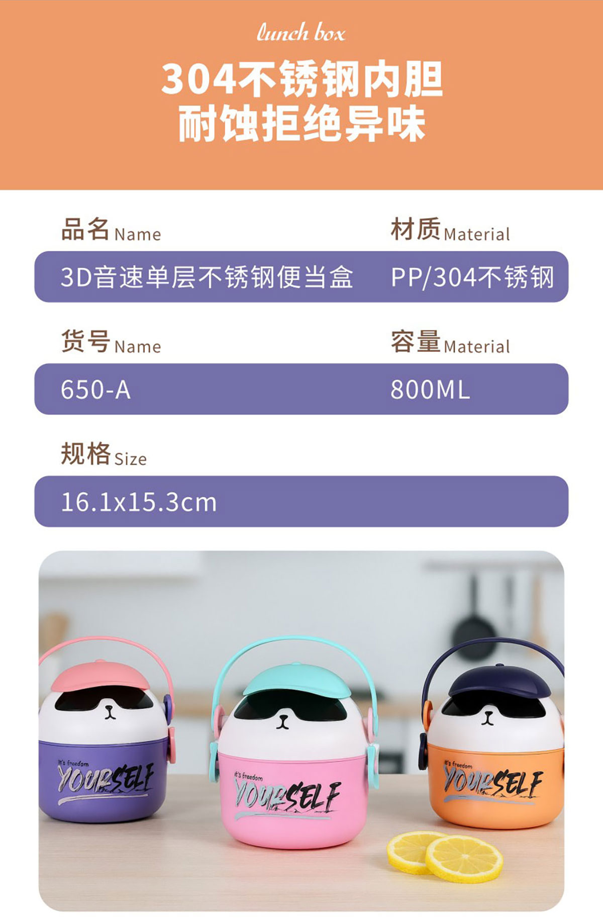 Size: HJL-650A(單層):161*153mm/800ml